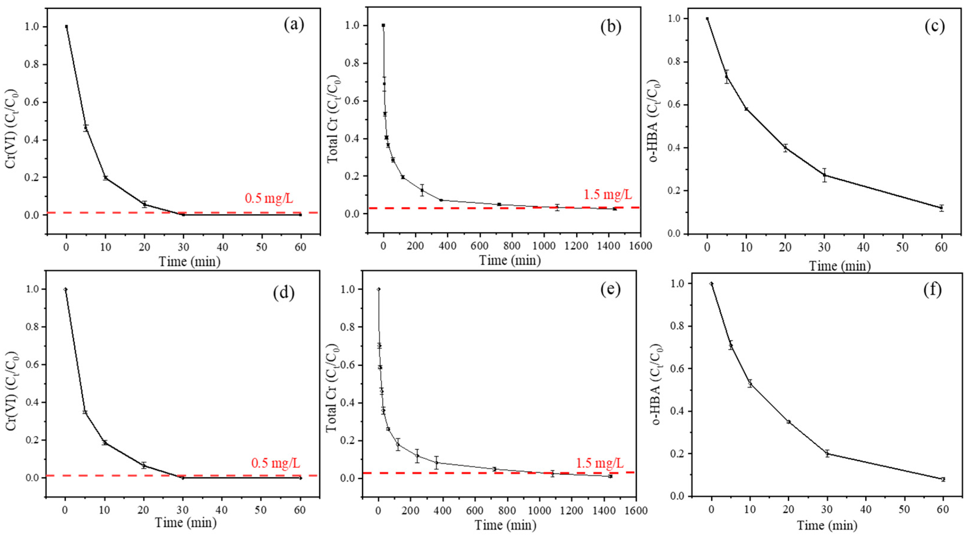 3.4. Influence of Typical Operation Conditions on Cr(VI) Reduction and Benzoic Acid Degradation