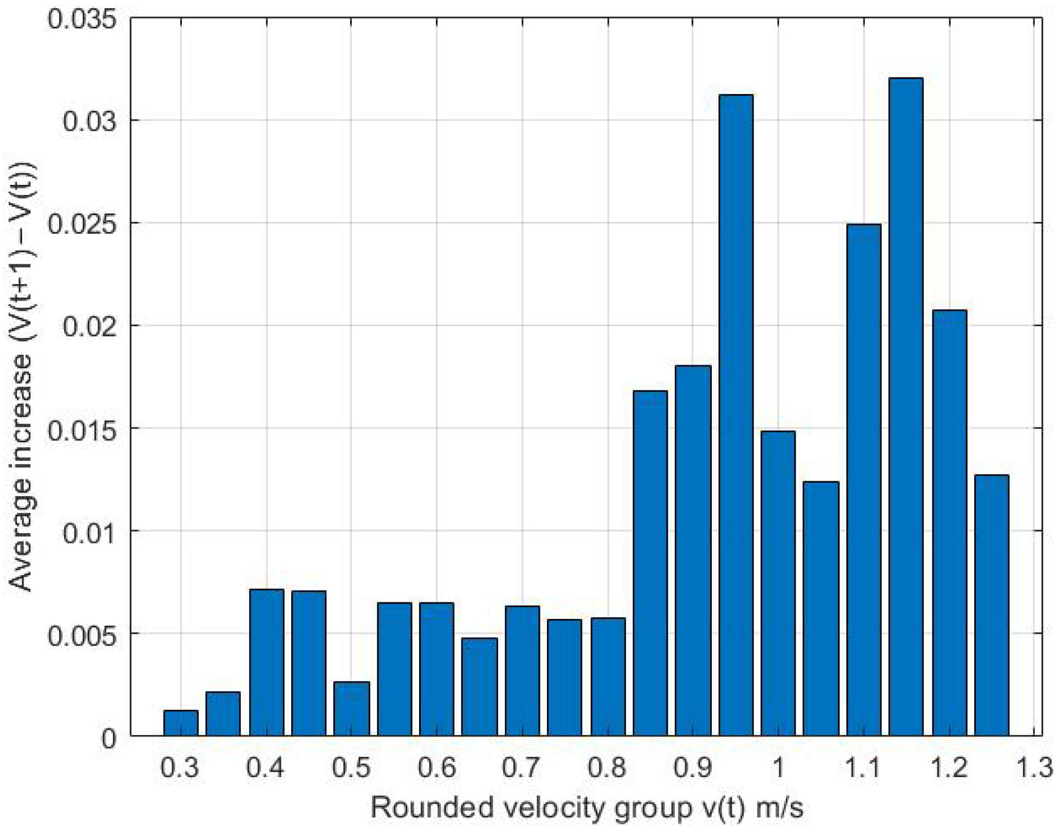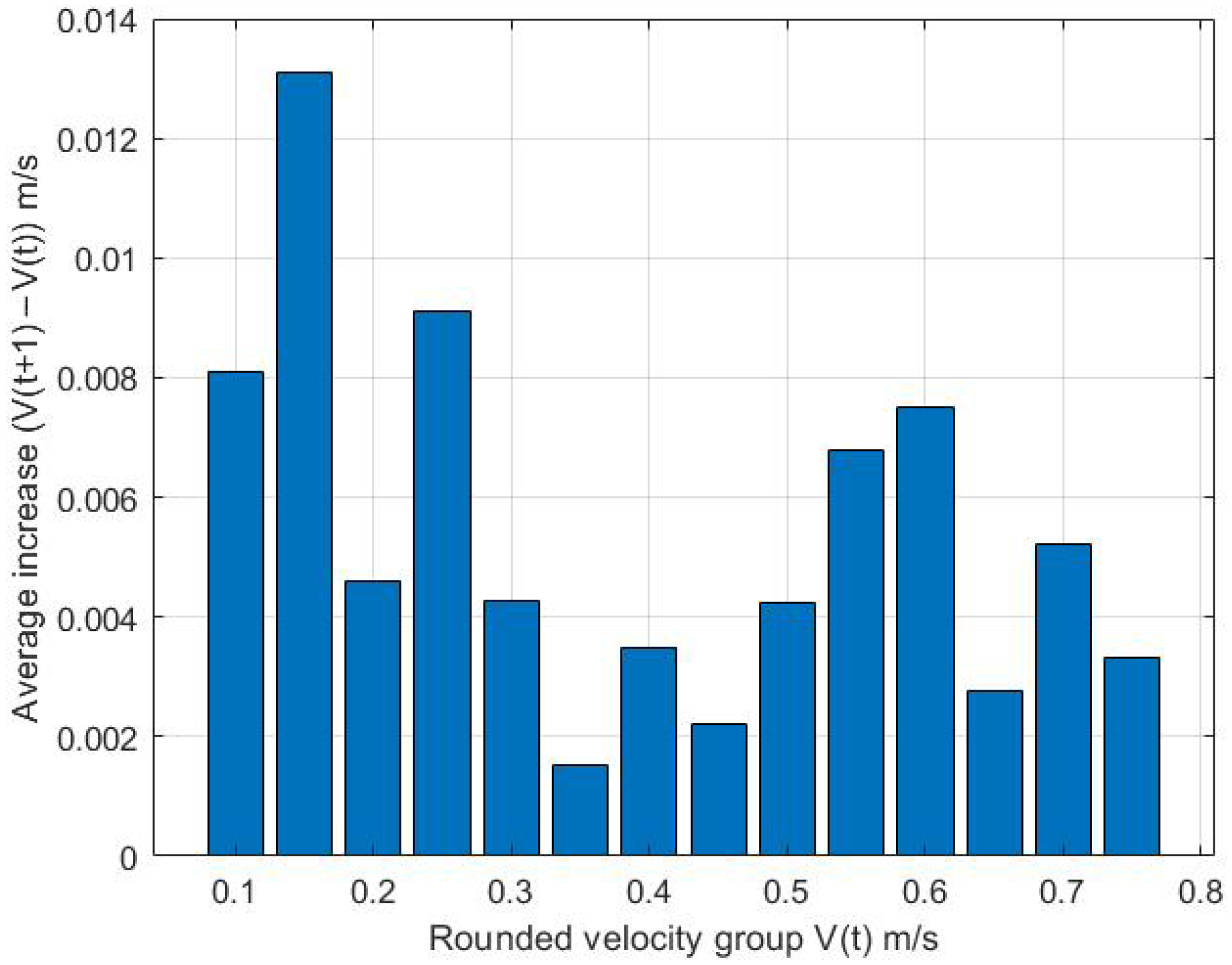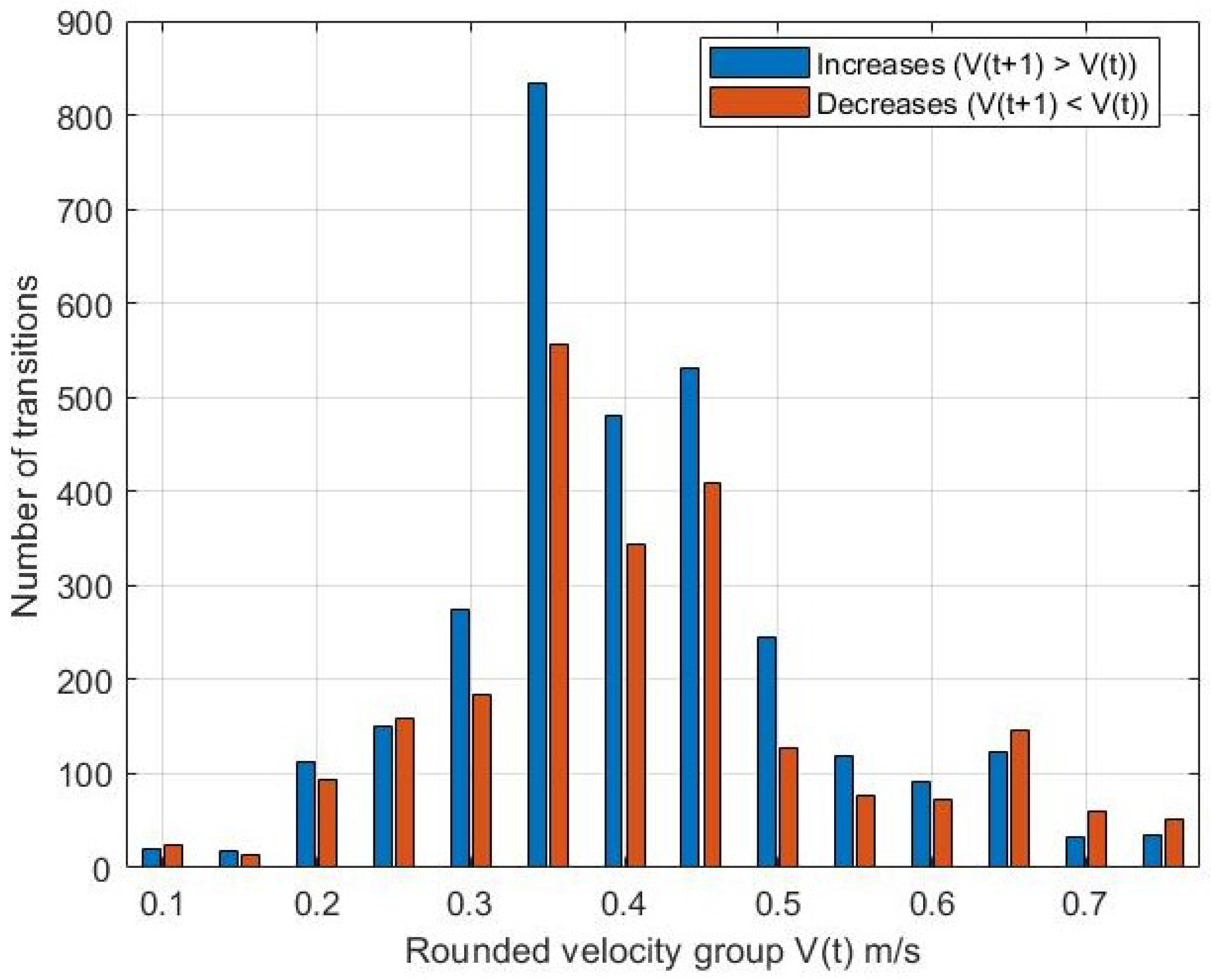Figure 11 demonstrates that movements toward higher velocities occur more frequently than movements toward lower velocities. This is particularly evident at velocities around