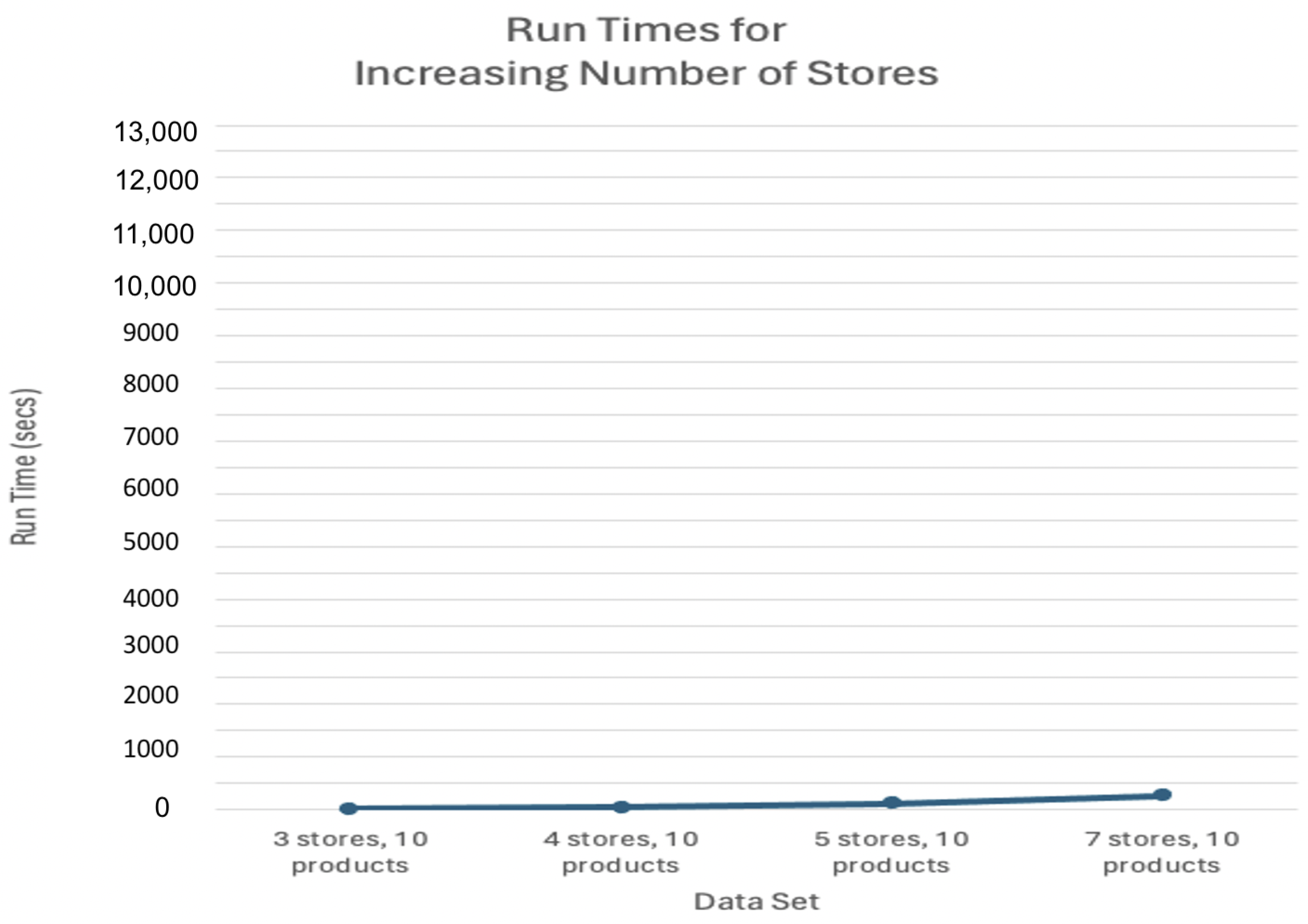 Increasing Number of Stores and Number of Products | 3 stores 10 products | 20.70 | 14,479 | 66,919 |