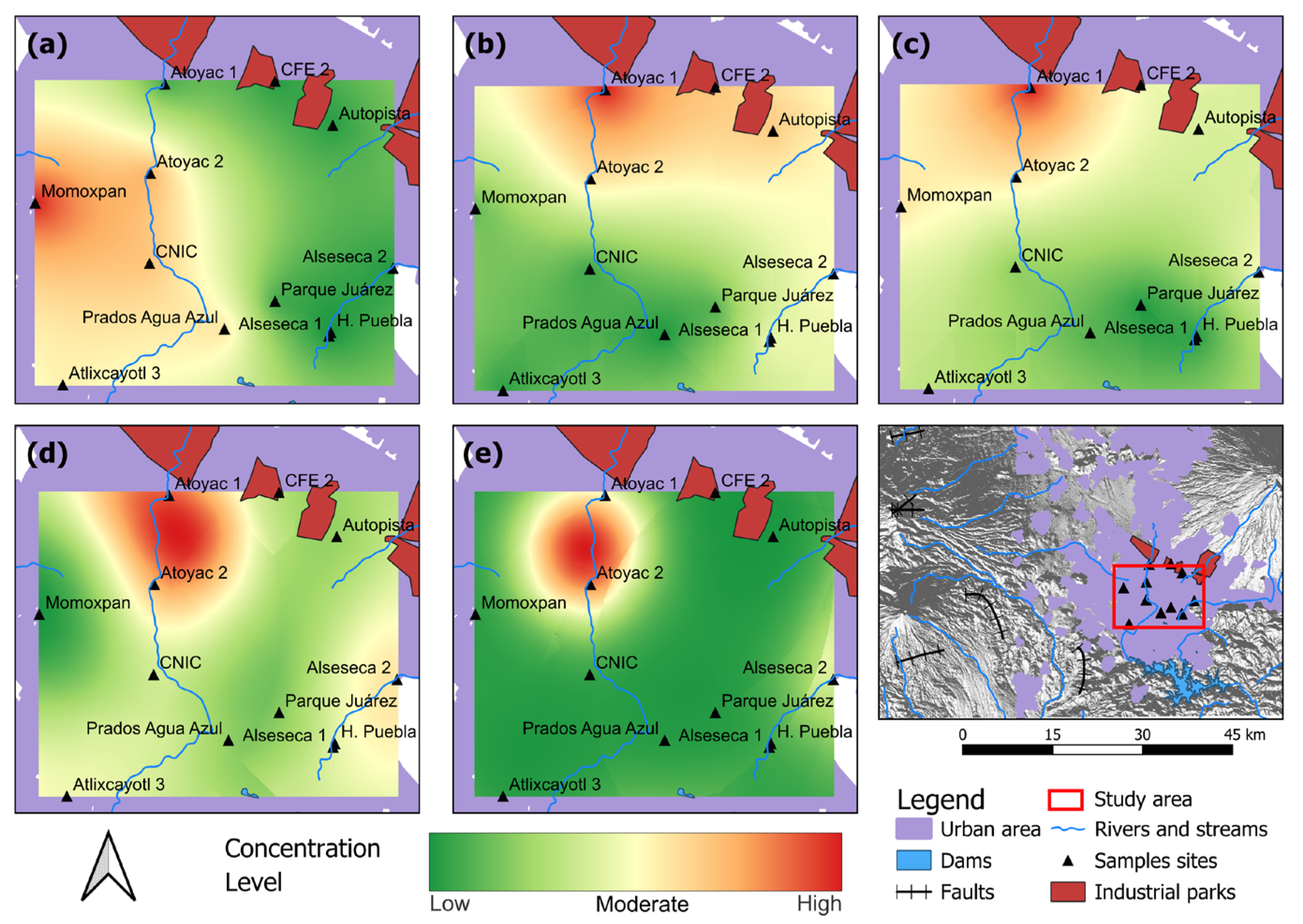 | Salcedo et al. [27,38] | Puebla Valley | 0–90.0 | 30.0–350.0 | 11,232.0 | 0–10.0 | 0–1130.0 | ||||