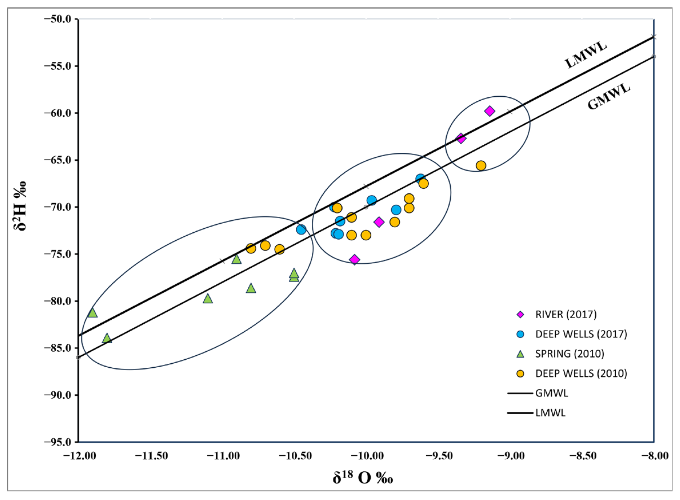- Terwey, J.L. Isotopes in Groundwater Hydrology. In Harare Symposium: Challenges in African Hydrology and Water Resources; IAHS: Amsterdam, The Netherlands, 1984; pp. 155–160. [Google Scholar]