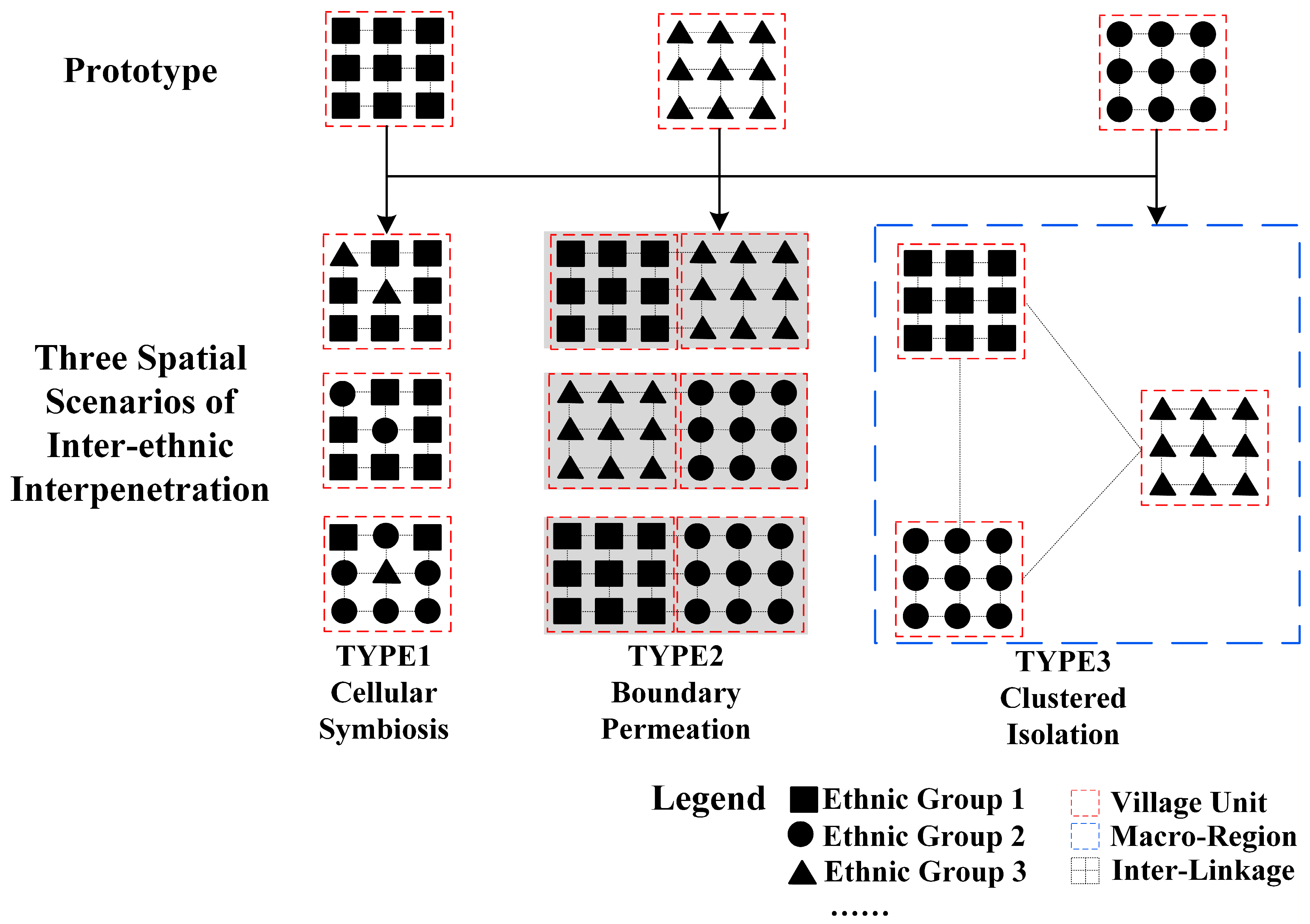 Defining Spatial Pattern | Spatially segregated, mono-ethnic clusters with definitive boundaries. | Settlements of distinct ethnic groups are adjacent, creating interfaces for interaction. | Multiple ethnic groups co-reside within a single village, creating a fine-grained, nested pattern. |