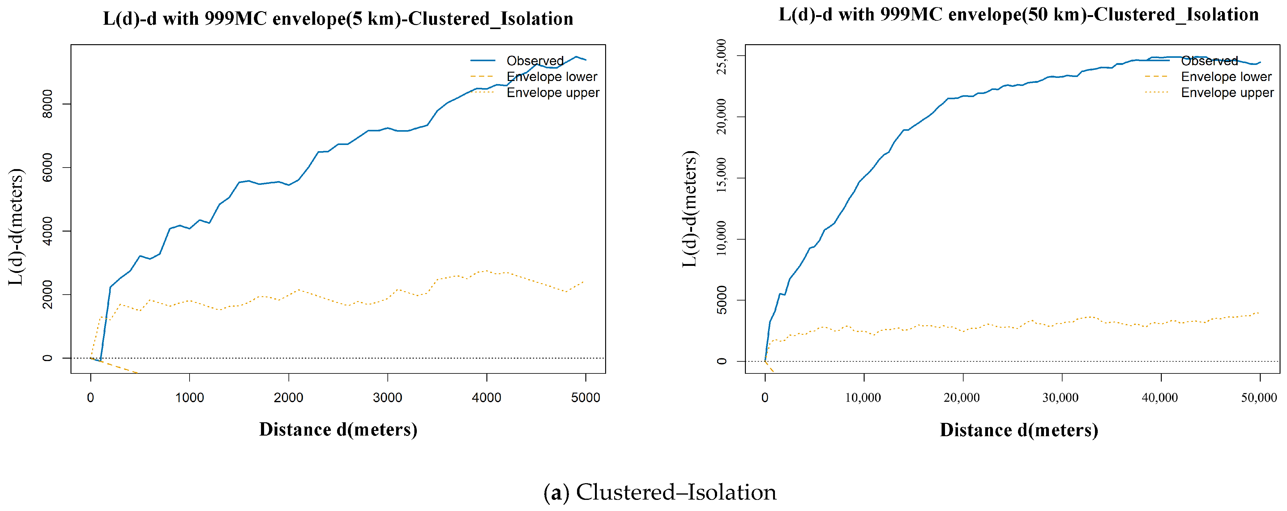4.2.2. Ripley’s K/L Spatial Significance Test