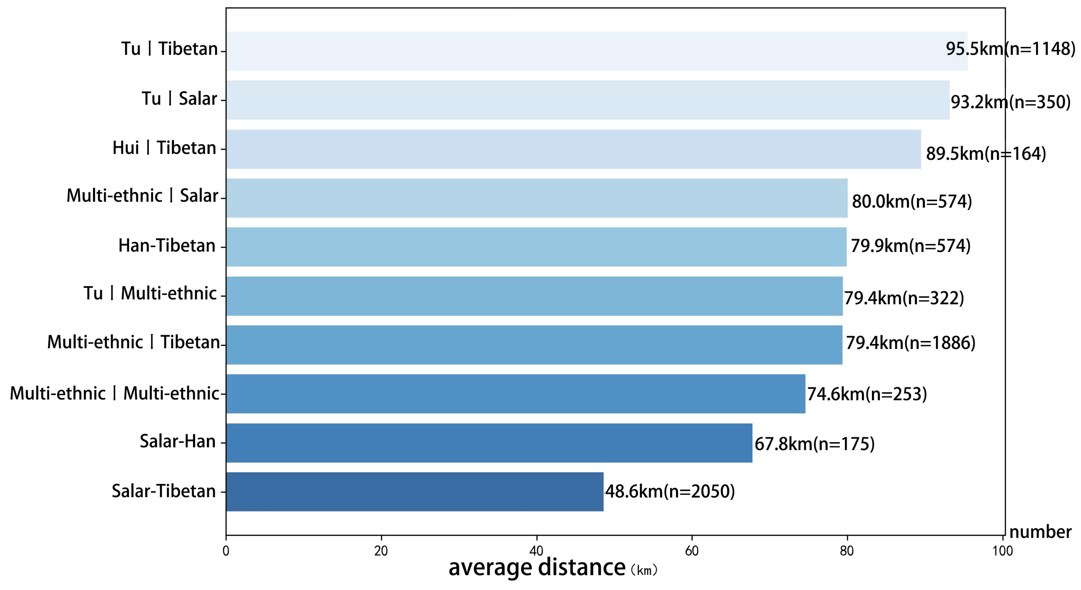 Cellular–Symbiosis | 22 | 14.4% | Tibetan–Han (12), Tibetan–Han–Tu (3), Tibetan–Han–Hui–Tu (3), Tibetan–Han–Hui (3), Salar–Hui (1), Han–Hui (1) | 2485.09 ±316.45 | 8.91 ±4.96 | 18,139.72 ±14,438.50 | 0.10 ± 0.06 | 0.44 |