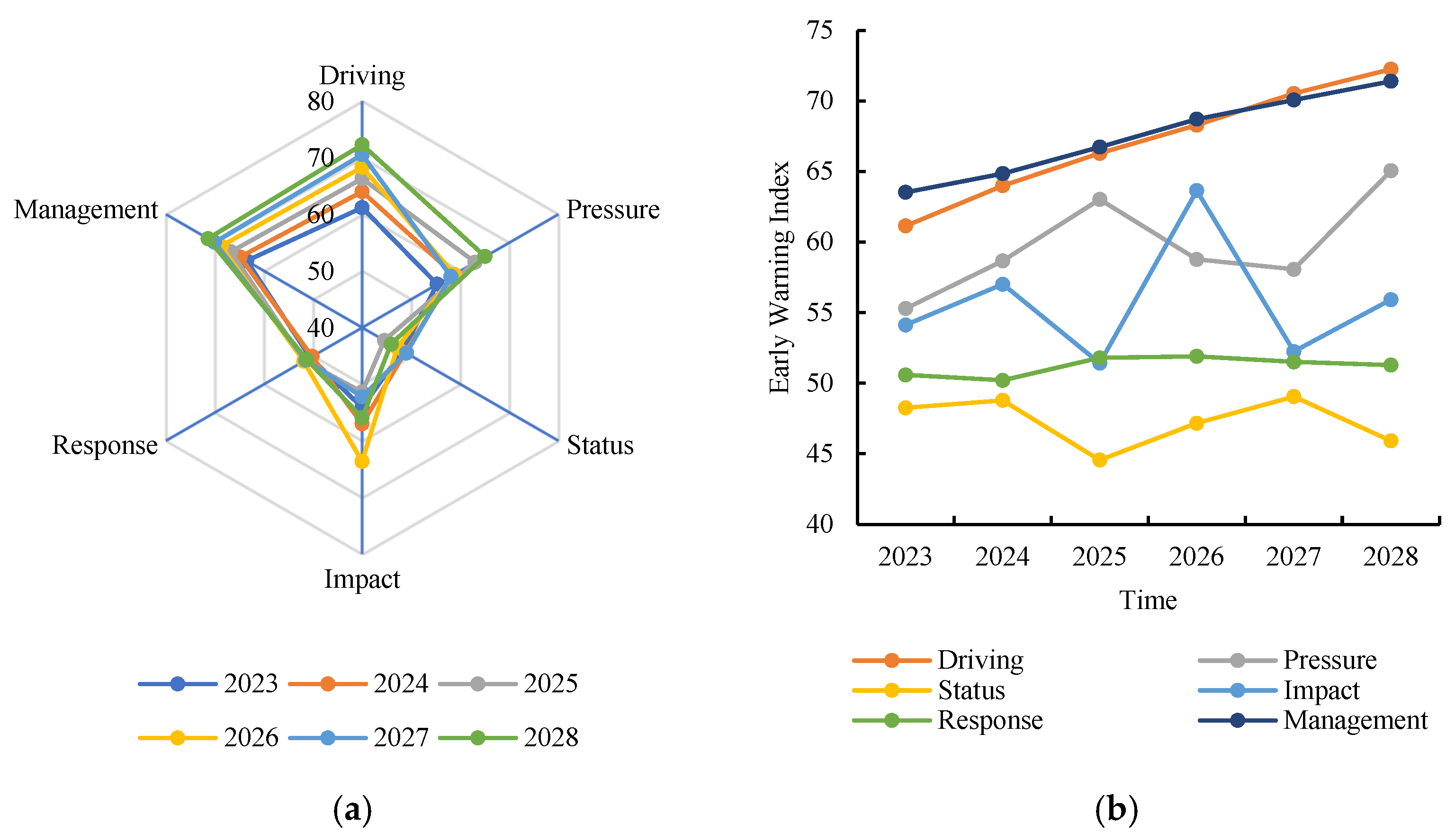 - Du, W.; Liao, X.; Tong, Z.; Rina, S.; Rong, G.; Zhang, J.; Liu, X.; Guo, E. Early Warning and Scenario Simulation of Ecological Security Based on DPSIRM Model and Bayesian Network: A Case Study of East Liaohe River in Jilin Province, China. J. Clean. Prod. 2023, 398, 136649. [Google Scholar] [CrossRef]