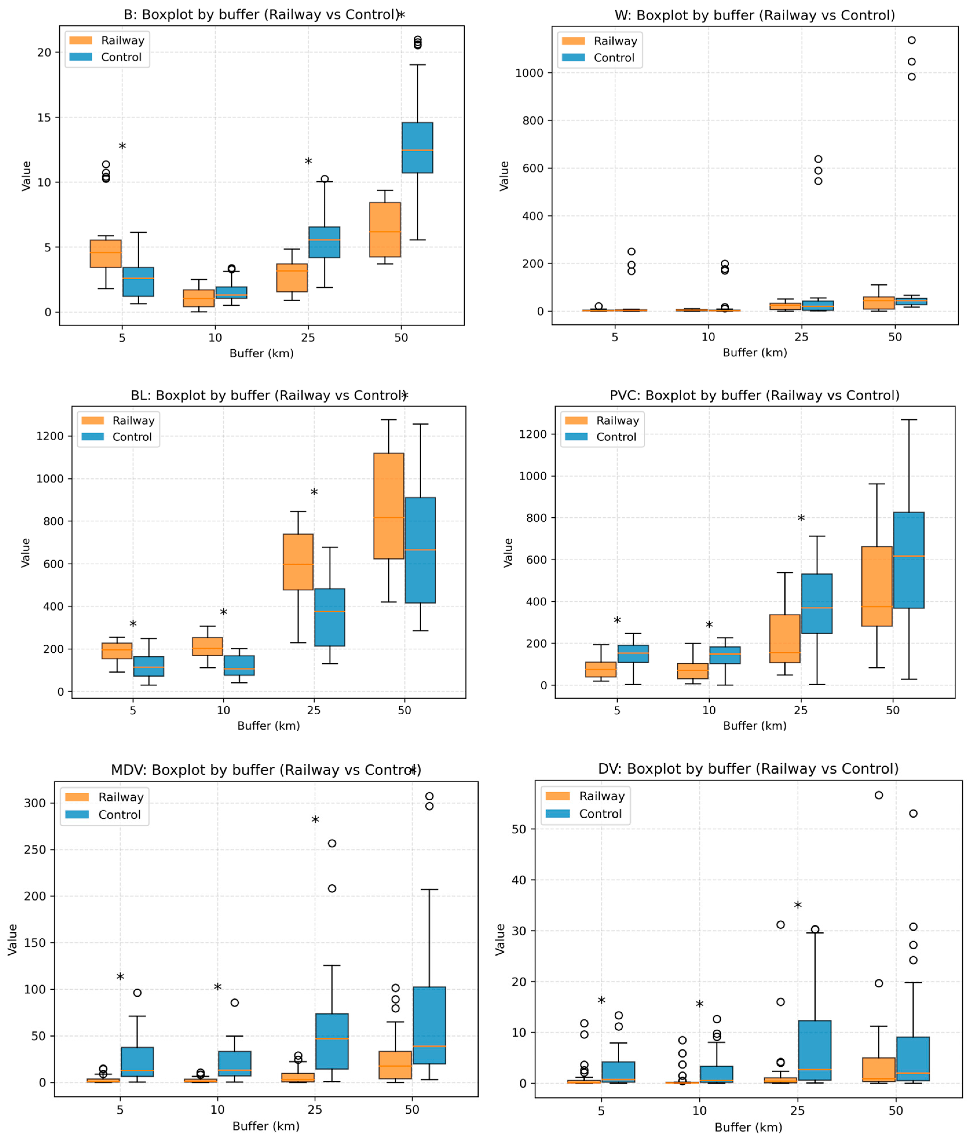 3.4. Comparison of Impact Coefficients Between the Railway and Control Area