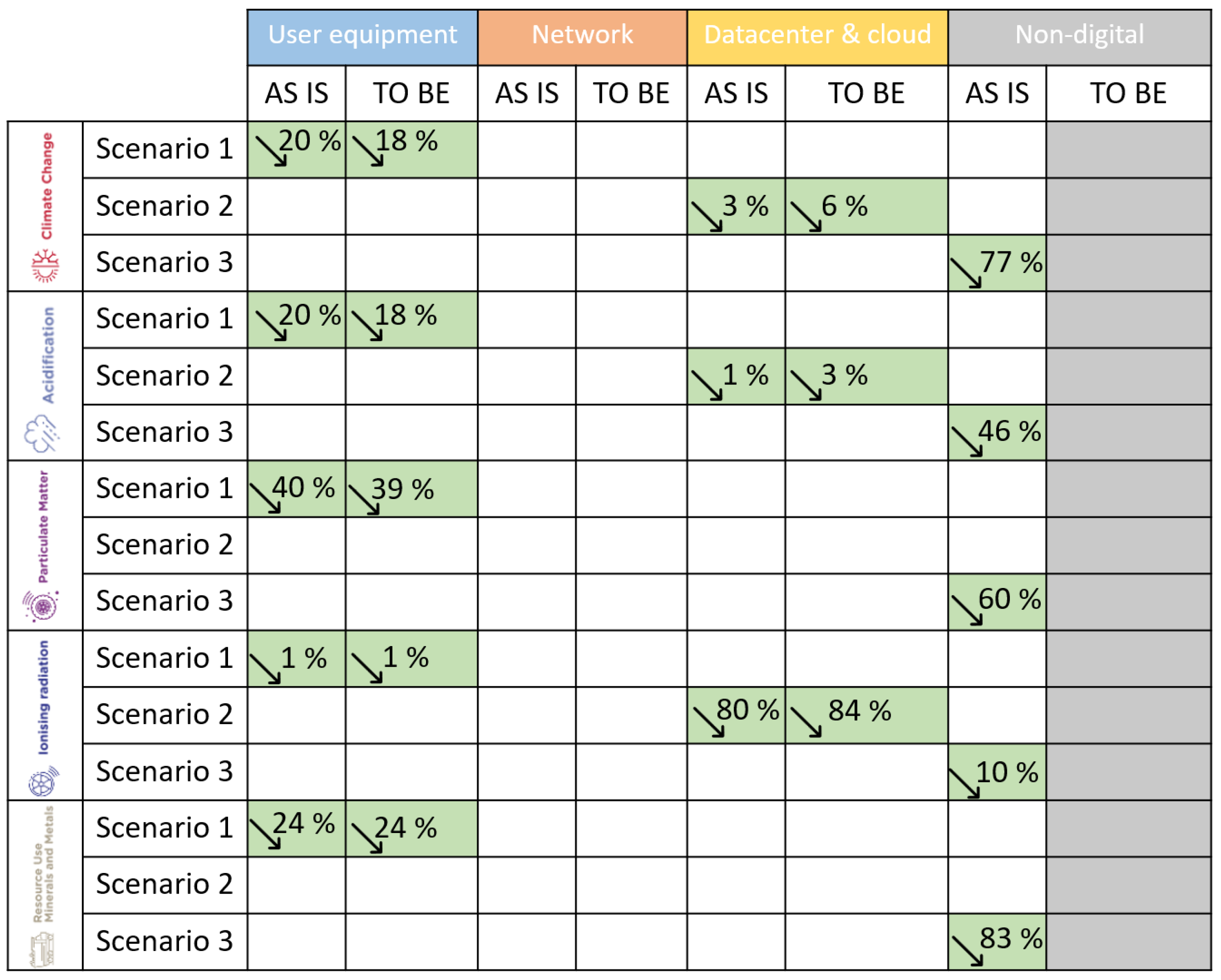 - User equipment: the manufacturing, distribution, use and end-of-life phases are taken into account for laptops with chargers, HDMI cables and mice (T1); desktop computers with central processing units, power cables, HDMI cables, mice and keyboards (T2); monitors with screens and power cables (T3); tablets with chargers (T4); and virtual reality headsets (T5).