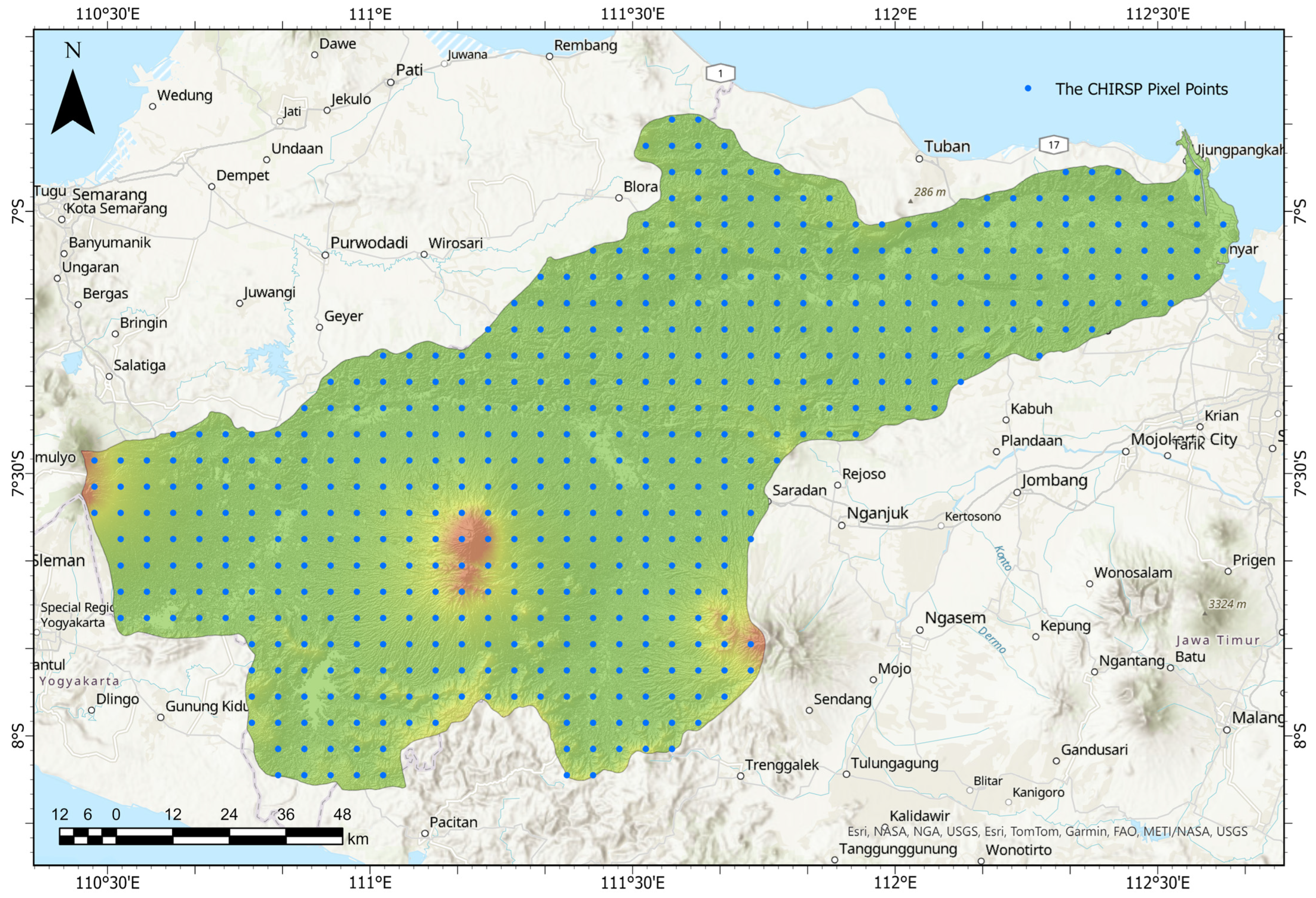 Figure 3. Locations of the sampling points for rainfall data extraction from CHIRPS.