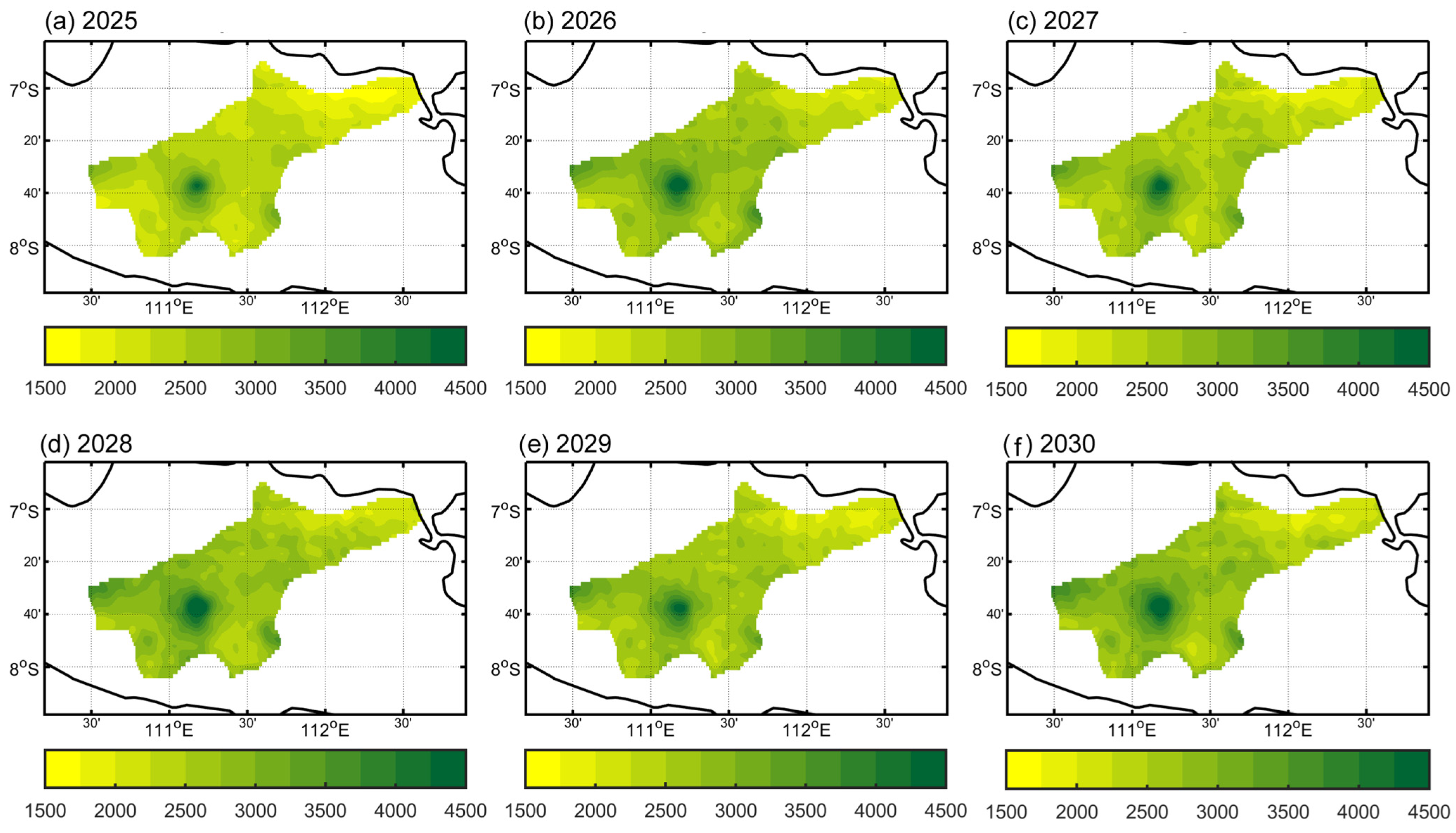 Figure 8. Temporal Trend of Average Annual Rainfall from 2025 to 2030.
