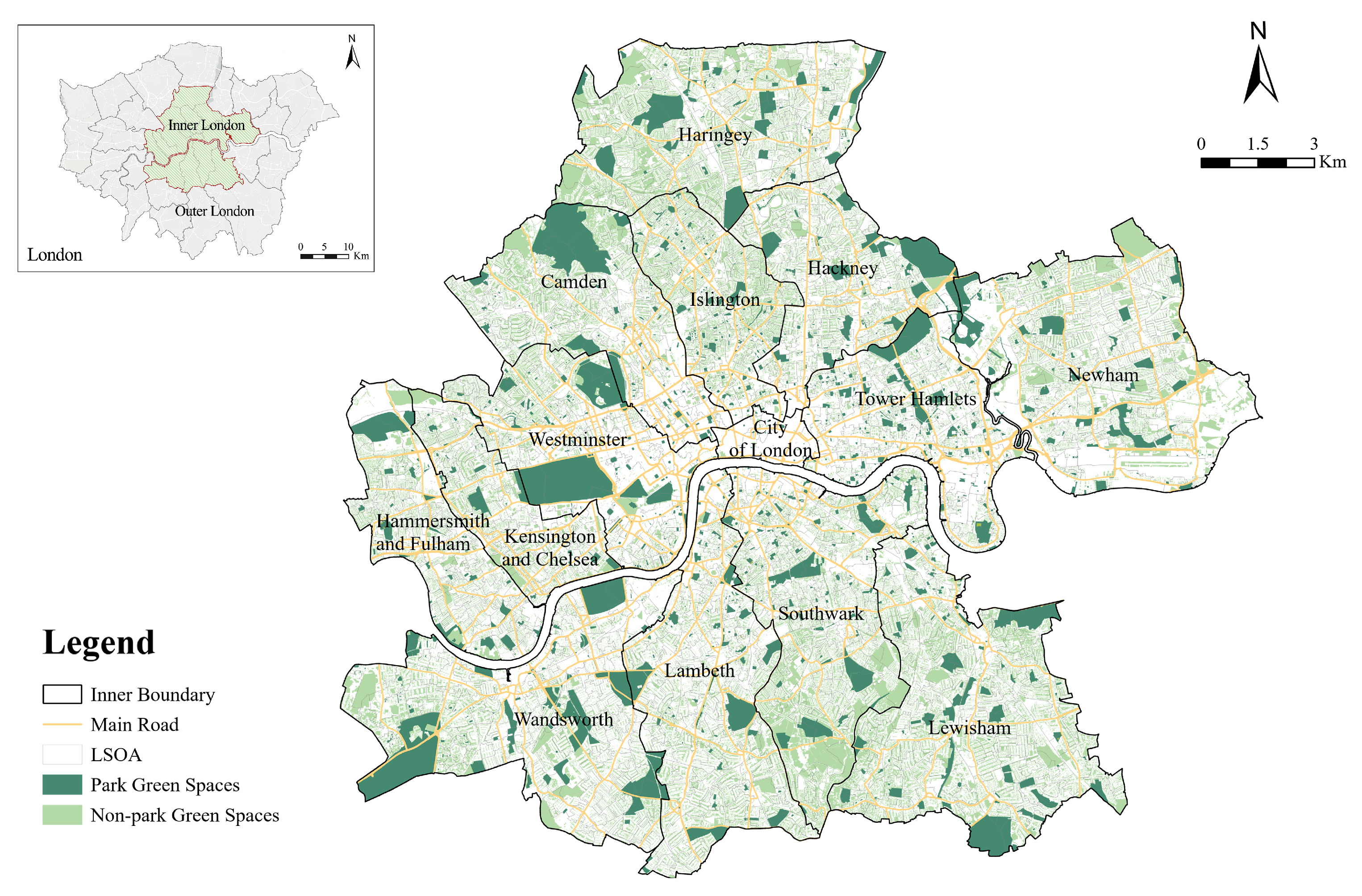 APA StyleWang, T., Du, X., Feng, G., & Hu, H. (2025). Hidden Greens, Hidden Inequities? Evaluating Accessibility and Spatial Equity of Non-Park Green Spaces in London. Sustainability, 17(20), 9284. https://doi.org/10.3390/su17209284