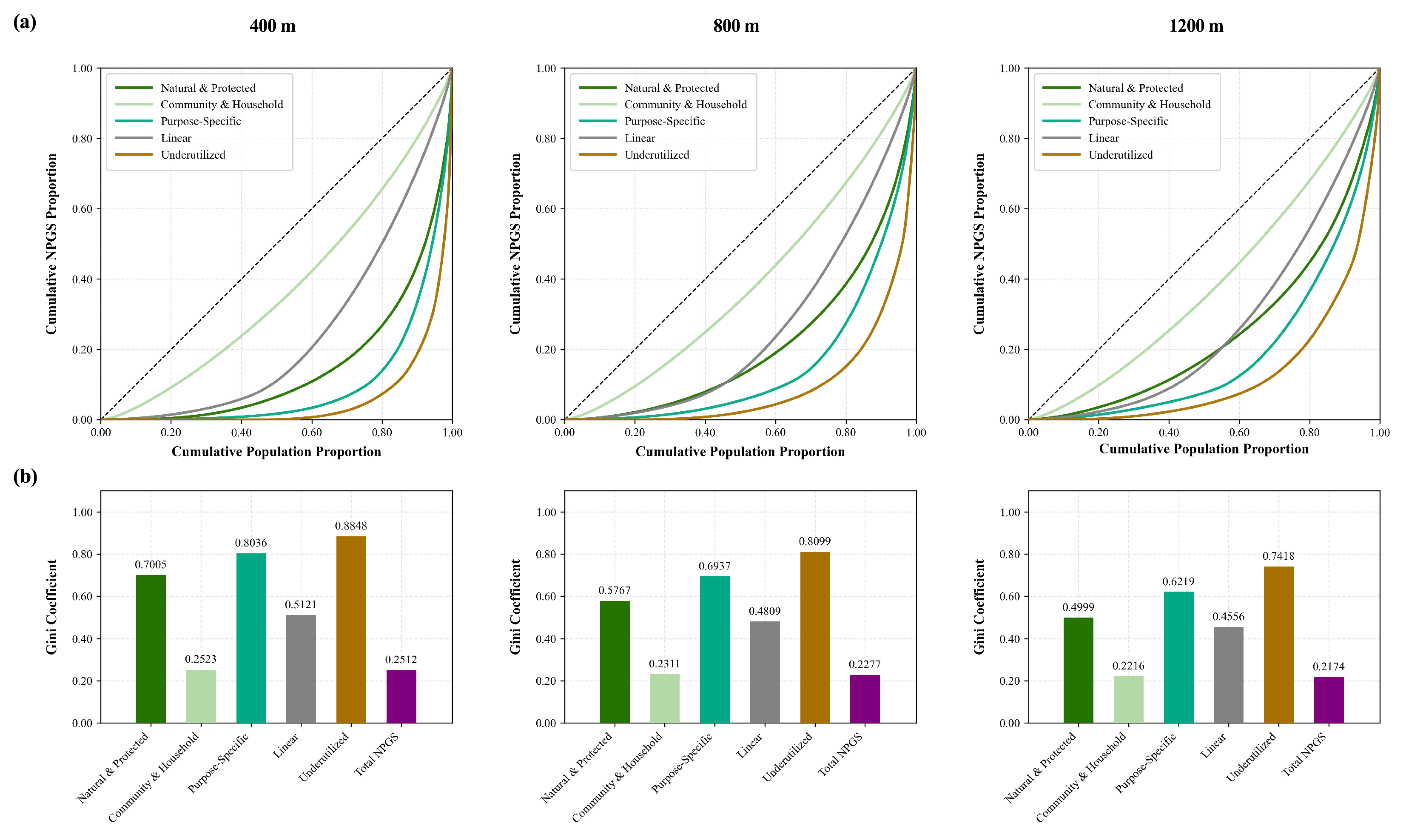 - Ke, X.; Huang, D.; Zhou, T.; Men, H. Contribution of Non-Park Green Space to the Equity of Urban Green Space Accessibility. Ecol. Indic. 2023, 146, 109855. [Google Scholar] [CrossRef]