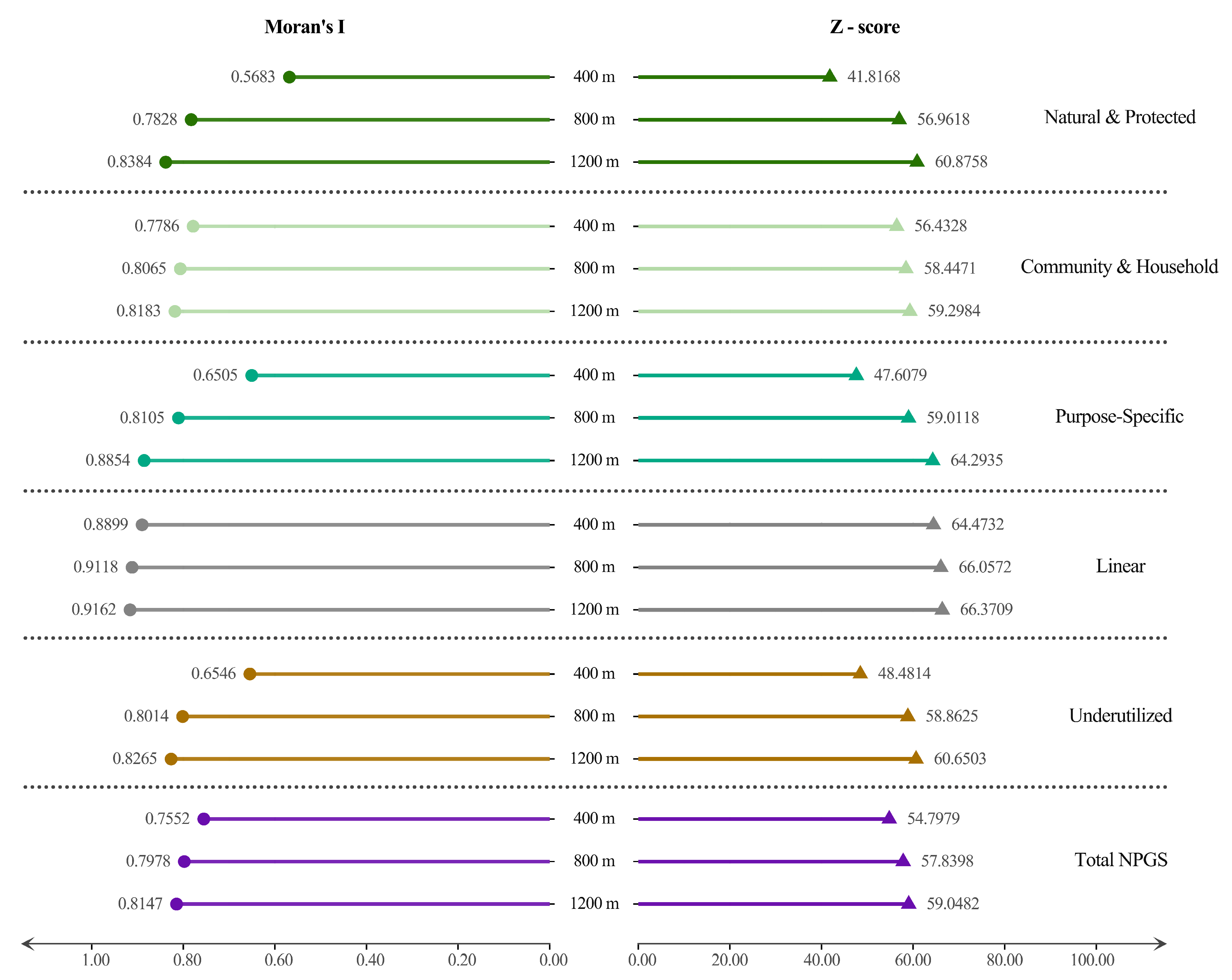 3.3.1. The Comparison of Accessibility Measurements of the Five NPGS Types