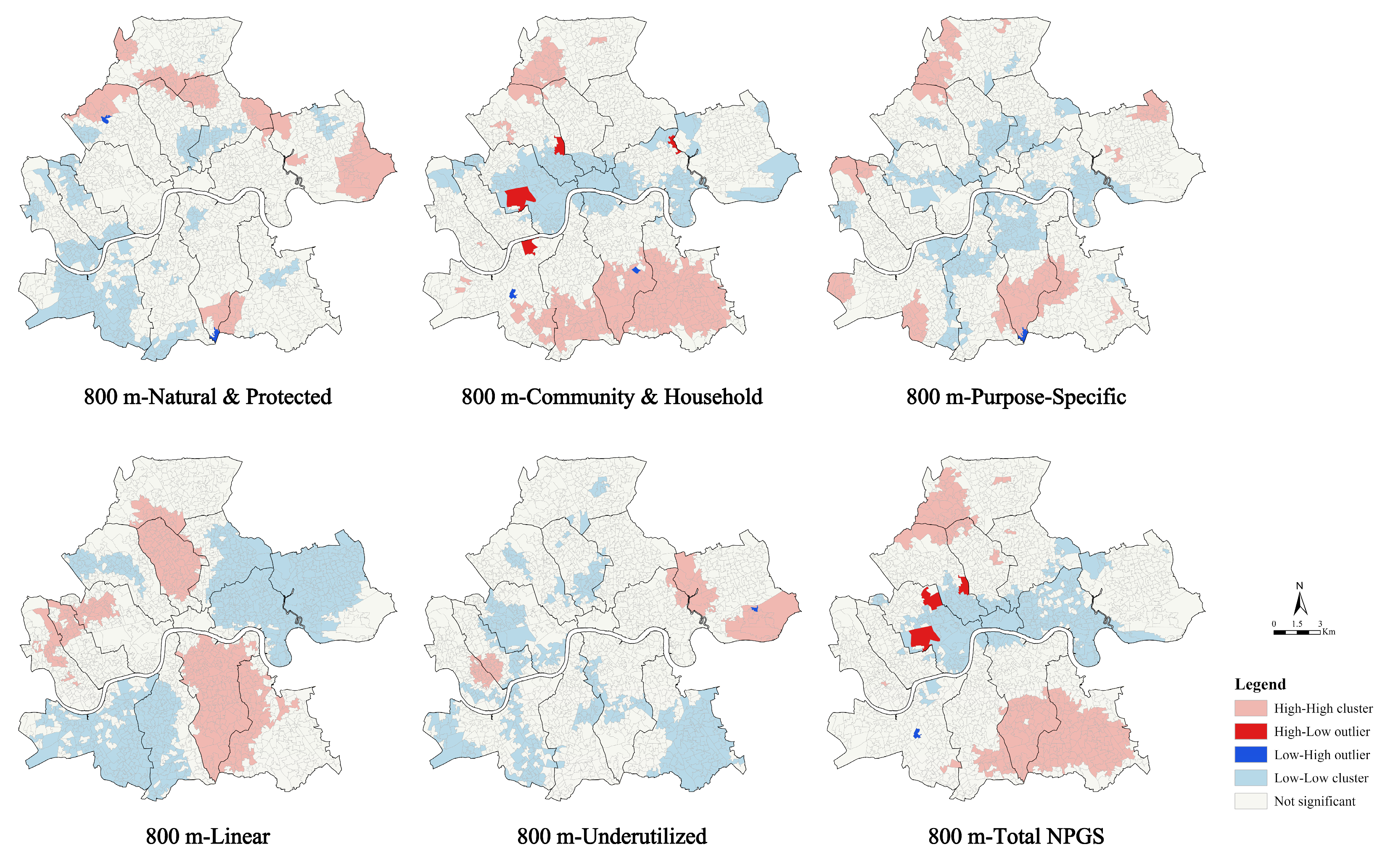 - Pan, J.; Bardhan, R.; Jin, Y. Spatial Distributive Effects of Public Green Space and COVID-19 Infection in London. Urban For. Urban Green. 2021, 62, 127182. [Google Scholar] [CrossRef] [PubMed]