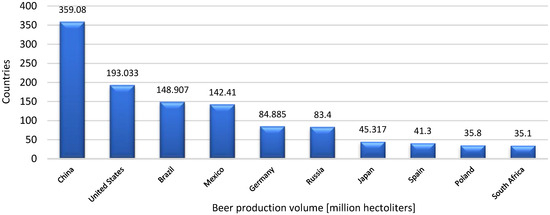 In terms of beer production volume in 2023, China was the top producer, as shown in Figure 2. China brewed about 359.08 million hectoliters of beer that year. With 193.03 million hectoliters of beer produced that year, the United States came in second [39].