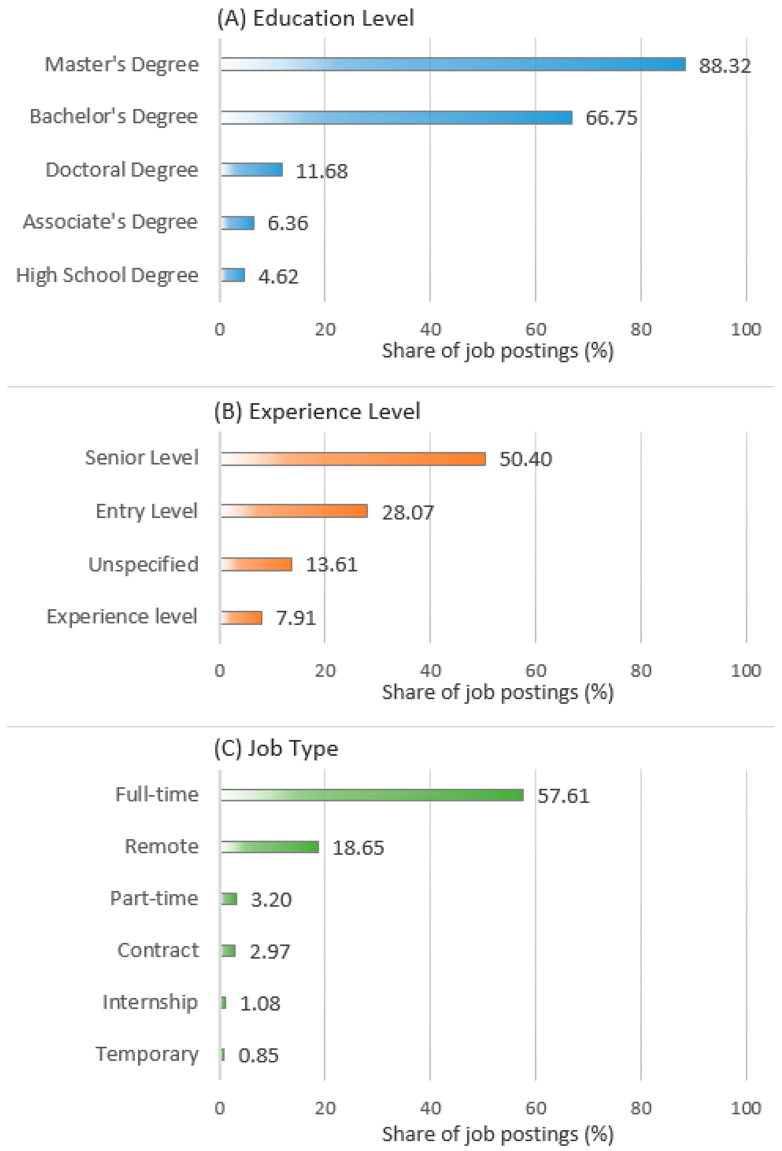 2.7. Analysis of Education, Experience, and Job Type Requirements