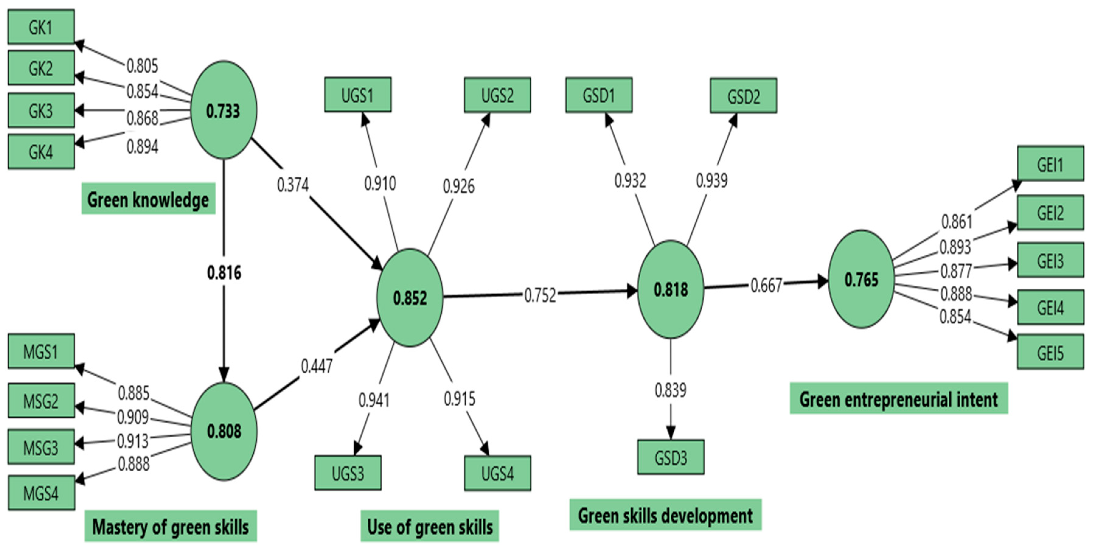 Green Entrepreneurial Intent | Green Knowledge | Green Skill Development | Mastery of Green Skills | Use of Green Skills | |