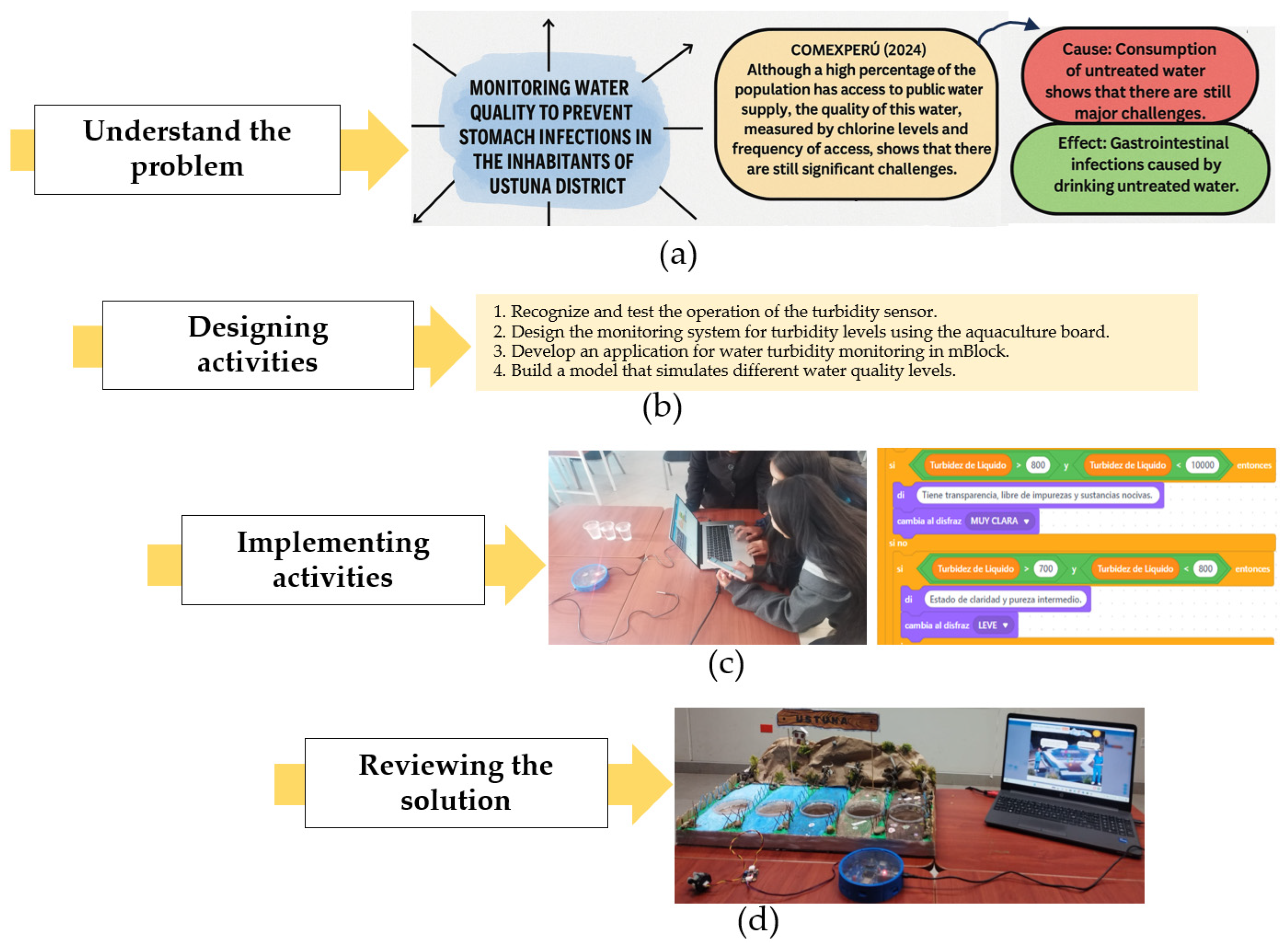 - Paucar-Curasma, R.; Tovar, R.F.U.; Jiménez, S.C.A.V.; Jara, N.J.; Agama, S.H.G.; Quijada-Villegas, J.H. Developing IoT Activities Using the Problem-Solving Method: Proposal for Novice Engineering Students. Math. Model. Eng. Probl. 2024, 11, 3161–3172. [Google Scholar] [CrossRef]