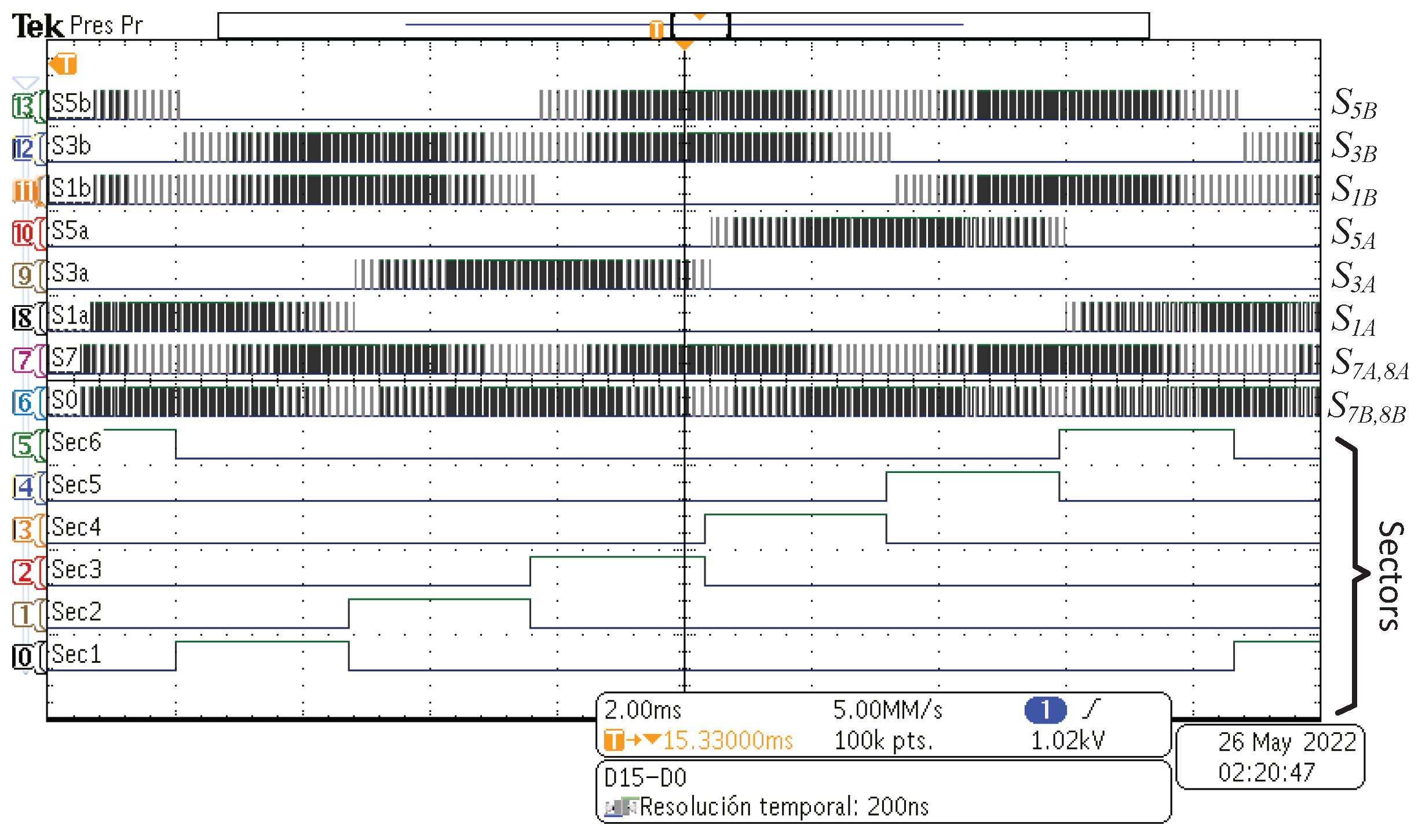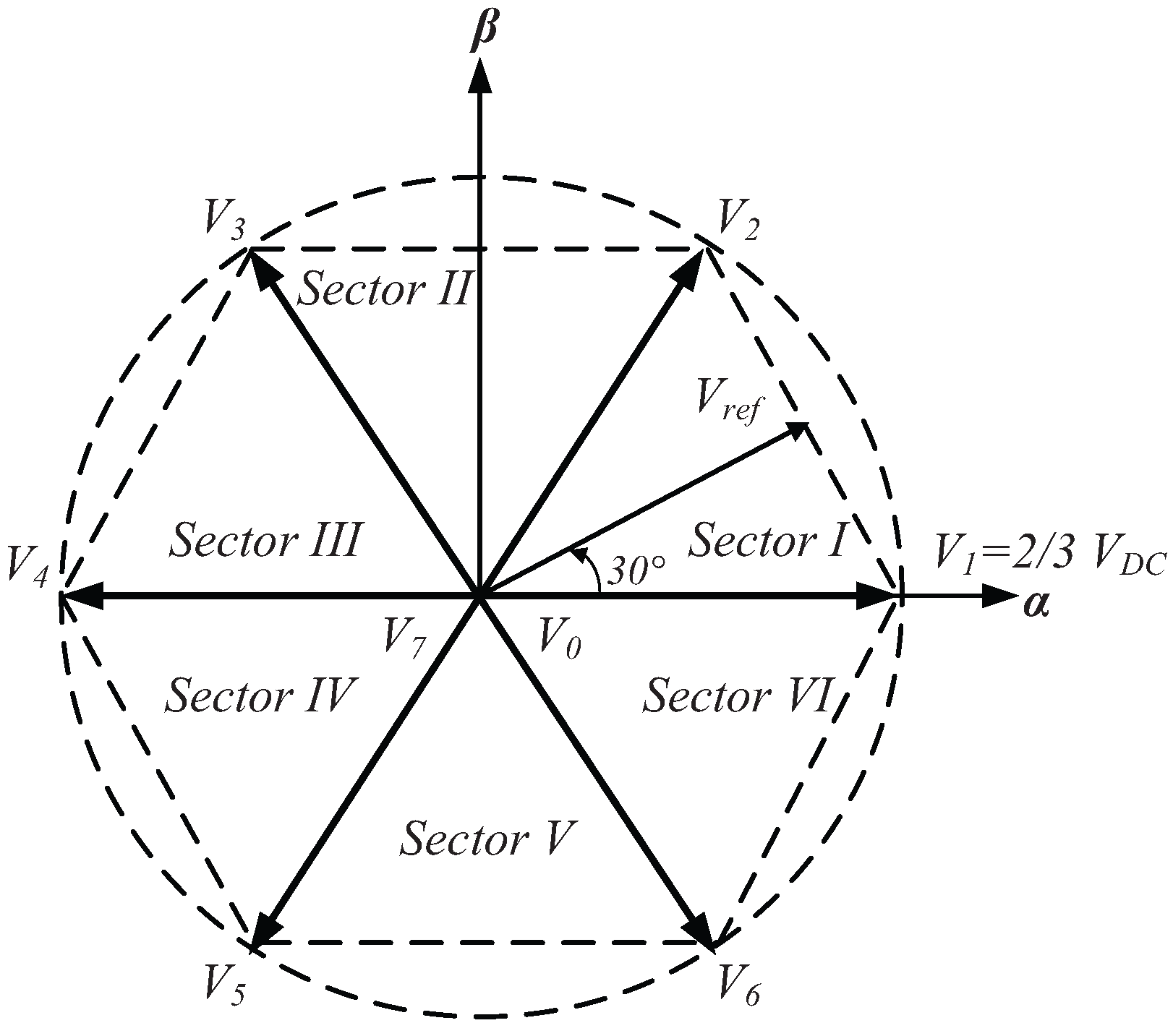 - The reference vector is located at the first sector, as it is shown in Figure 6;