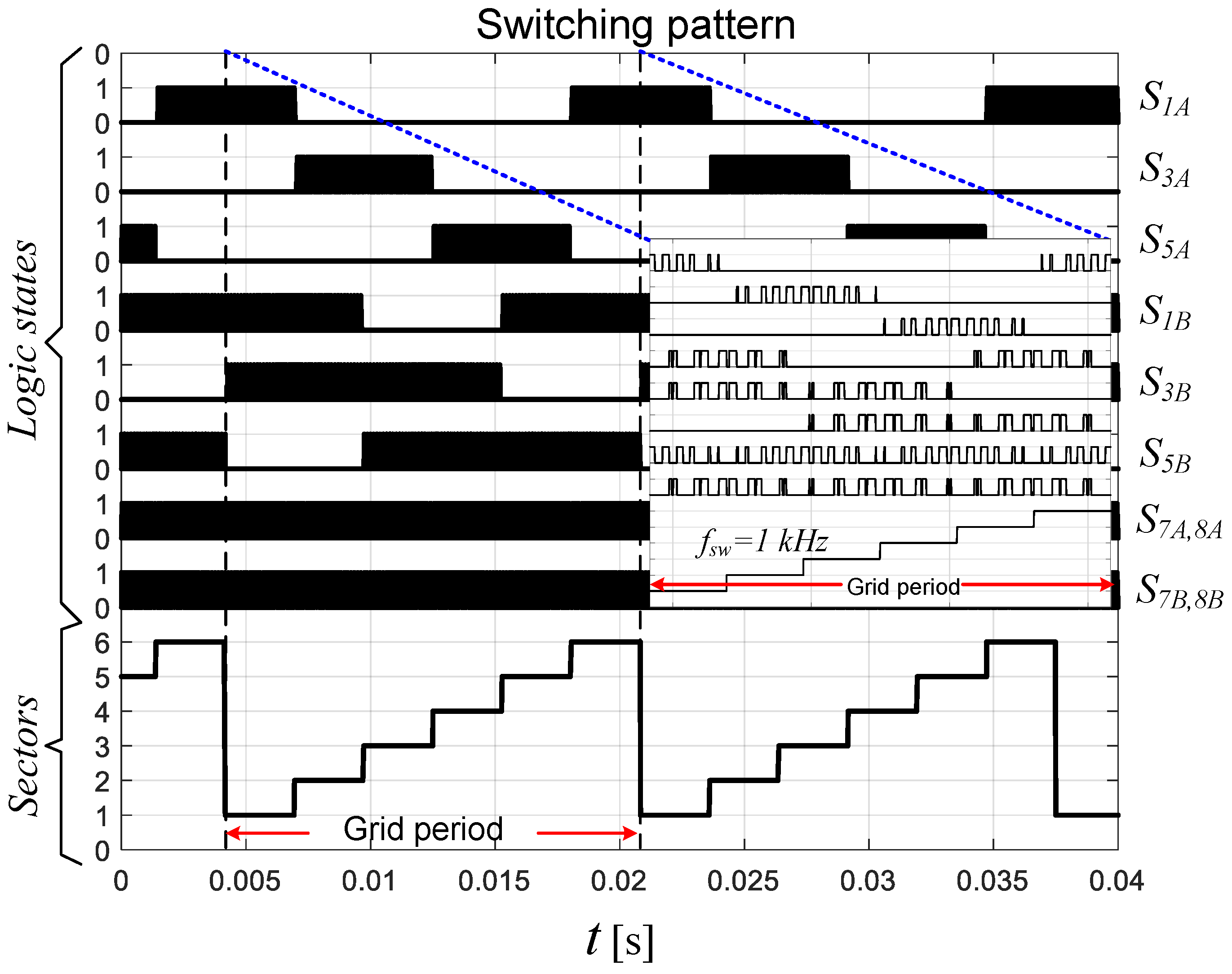 - The space vector sequence is the one that is used for the conventional two-level three-phase inverter.