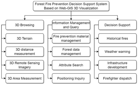The integration of GIS and Remote Sensing (RS) technologies has markedly advanced the development of Forest Fire Decision Support Systems (FFDSS). These systems enhance capabilities in fire monitoring, risk zoning, and resource allocation optimization [6,7,8,9]. In parallel, 3D visualization and fire spread simulation techniques have been increasingly adopted to improve the prediction accuracy of fire behavior [10,11,12,13,14]. Despite these advancements, many systems remain constrained by client/server (C/S) architectures, which hinder real-time cross-departmental collaboration and accessibility for non-expert users [15,16].