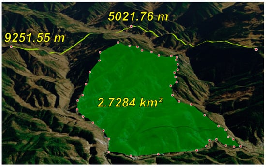 A distinctive feature of this system is its incorporation of a three-dimensional terrain model. This feature provides a level of detail surpassing that of traditional flat GIS, enabling a more accurate representation of complex terrains, such as forested and mountainous regions. Conventional 2D GIS measurements often encounter challenges with obstructions and perspective distortions, which can lead to inaccuracies. In contrast, 3D spatial measurements effectively overcome these limitations. The measurement tools in this system closely follow the contours of the terrain, circumventing visual obstacles to provide precise and reliable measurements (Figure 9).