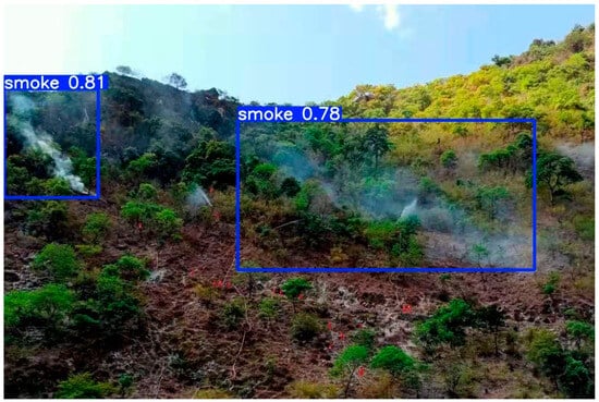 The system utilizes streaming protocols to integrate remote video surveillance, enabling real-time monitoring of forest fires (Figure 10). To automatically analyze these video streams, a dedicated deep learning model was developed and deployed for real-time detection of flame and smoke signatures. This model is built on the YOLO11 object detection architecture, chosen for its optimal trade-off between inference speed and detection accuracy [26].