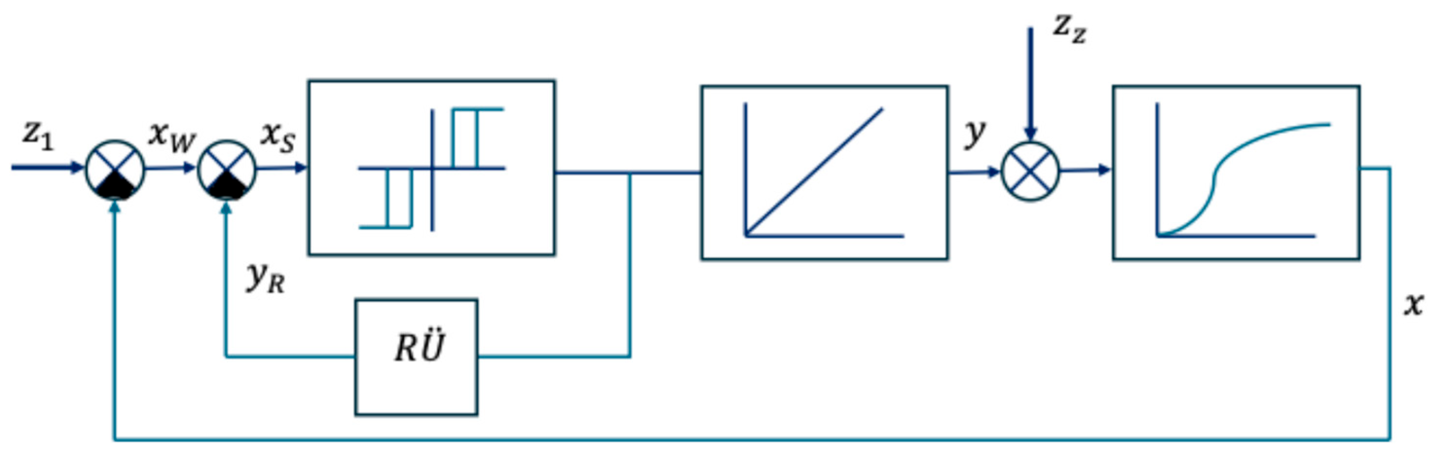 Figure 4. Block diagram of a control system with a relay as a control amplifier x s = x W y R .