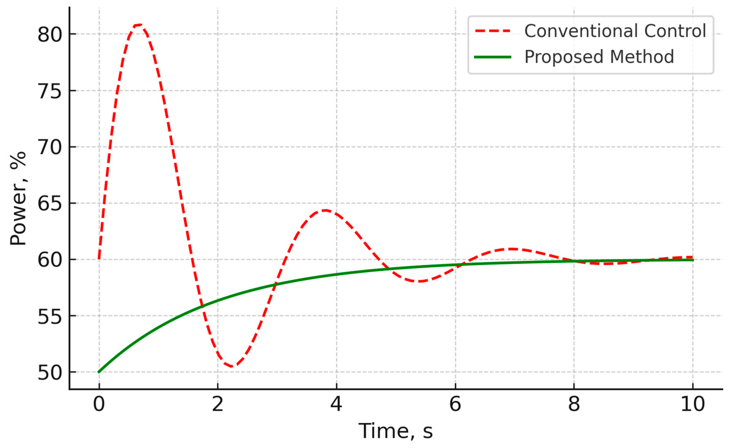 This study aims to fill this gap. Unlike most existing approaches, it focuses on developing a universal methodology for the approximate implementation of optimal transient processes in systems with limited control actions, using standard controllers without the need to embed additional intelligent blocks. This solution combines analytical rigor, industrial feasibility, and compliance with modern requirements for sustainability and energy efficiency, making it particularly relevant in the context of LSPS and sustainable industrial development.