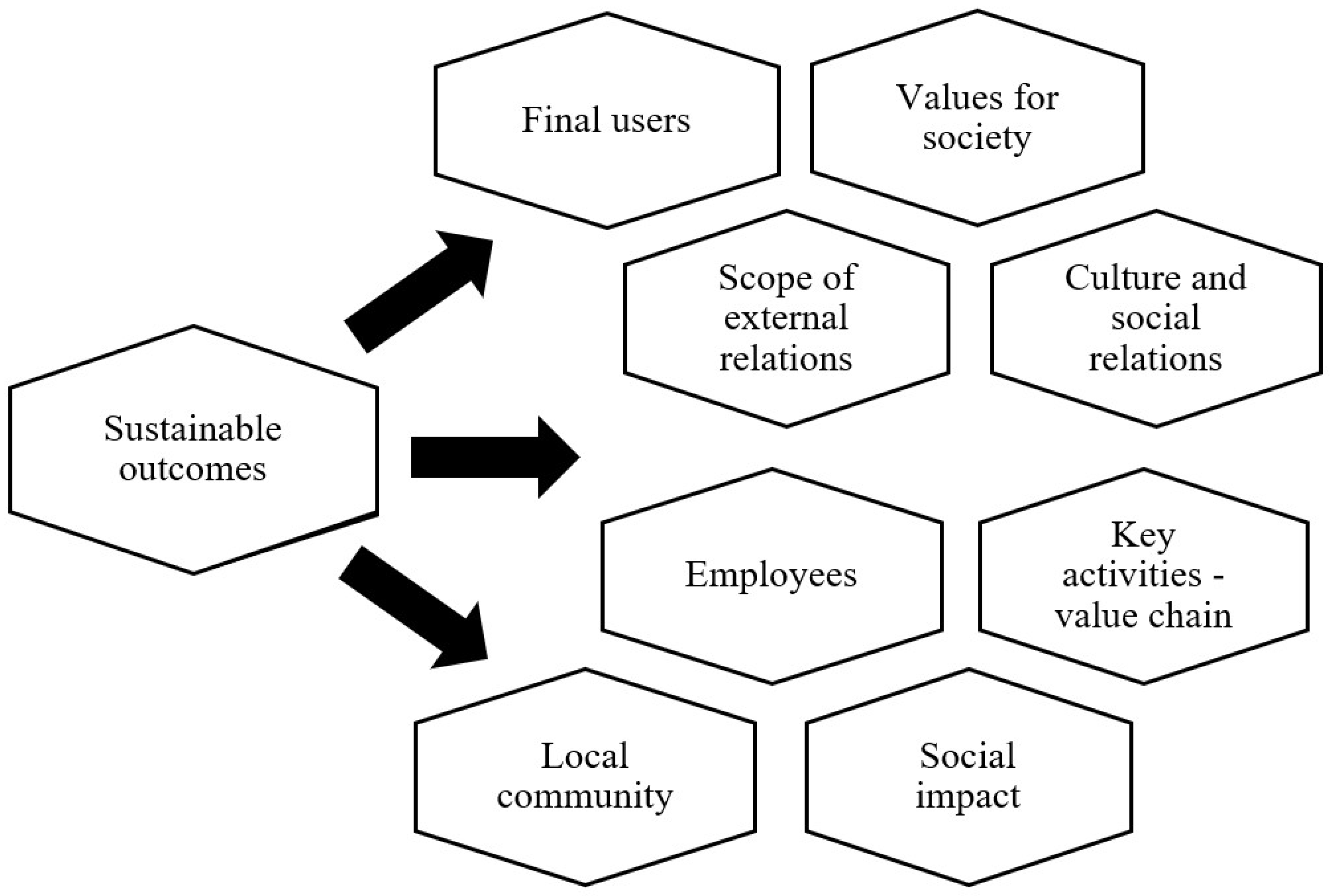 This article addresses the contemporary and highly relevant research area of business sustainability, which attracts the attention of both scholars and management practitioners. Although the social dimension of sustainability is gaining increasing importance, there remains a research gap regarding the extent to which social initiatives contribute to sustainable outcomes. This study specifically focuses on the social dimension of business sustainability. The primary objective of the study is to examine the relationship between activities within the social dimension and sustainable outcomes. Moreover the study extends earlier research by contributing new empirical evidence from the Polish context, thereby enriching the existing body of knowledge. The study encompasses 303 organizations operating in Poland and utilizes a questionnaire-based survey. The collected data were employed to construct a regression model. The results indicate statistically significant relationships between social outcomes and key variables, namely, societal values and employee-related outcomes. The results indicate that social value creation and value chain integration are the strongest predictors of sustainable outcomes The variables were measured using subjective indicators. In addition, the research was conducted only in companies operating in Poland, and the results may be typical of businesses operating in this country. Therefore, the research should be extended to other countries, and it would be particularly interesting to compare with companies operating in countries where sustainability-related indicators are highly rated. It would also be very interesting to expand the data gained through questionnaires through interviews and case studies, linking social-focused business activities to the benefits that businesses can achieve in the area of sustainable outcomes as a result.