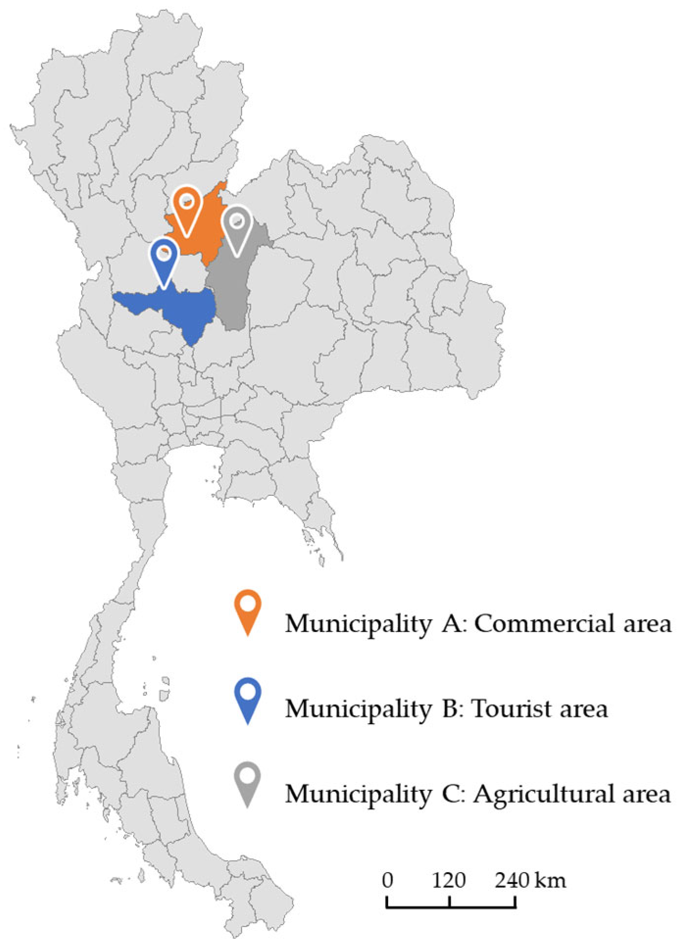 In addition, this study was geographically confined to three municipalities in Northern Thailand. Future research could expand the analysis to include additional municipalities in other regions of Thailand or in other countries, to adapt the findings under diverse socio-economic and geographic contexts. Moreover, subsequent studies could also investigate other types of plastic waste.