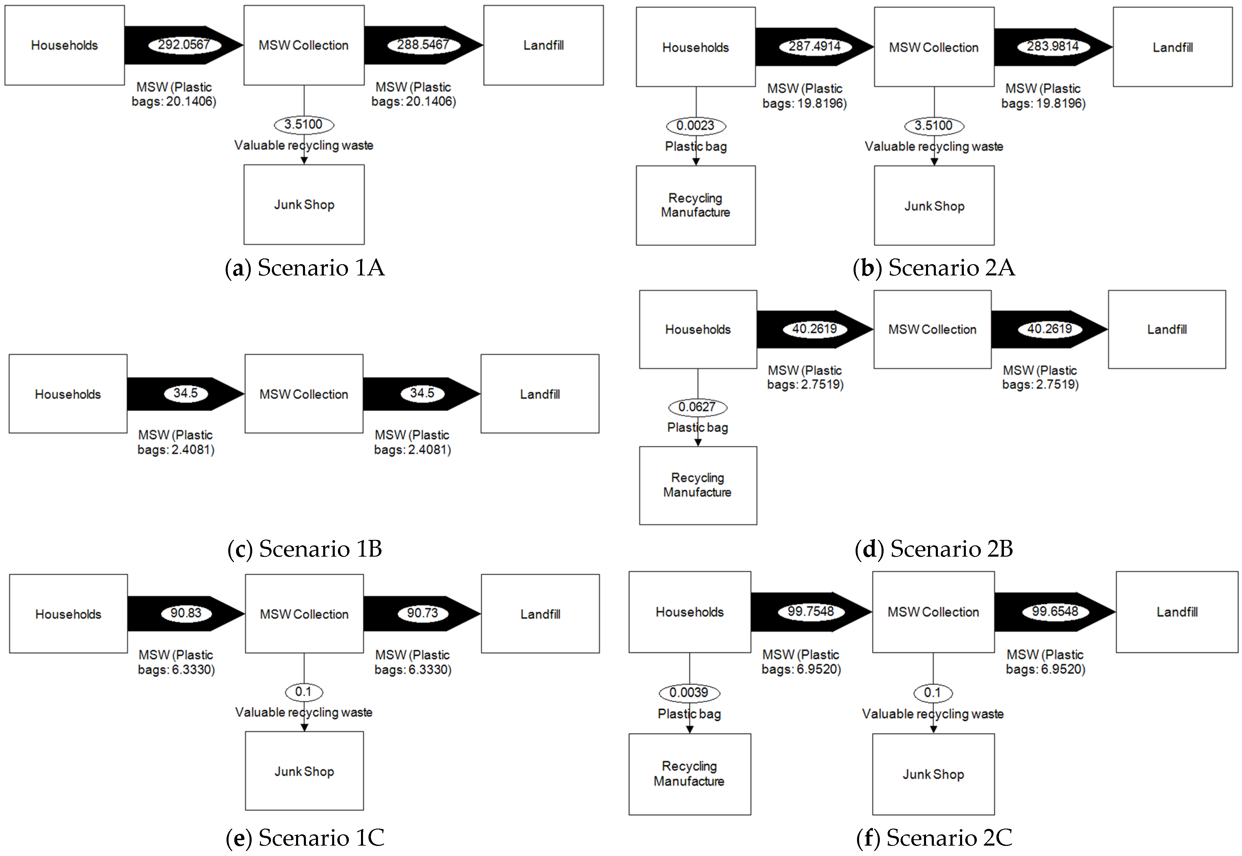 64]. This approach enabled a systematic assessment of plastic bag movement across different management stages, thereby providing a transparent and standardized basis for comparison between scenarios.