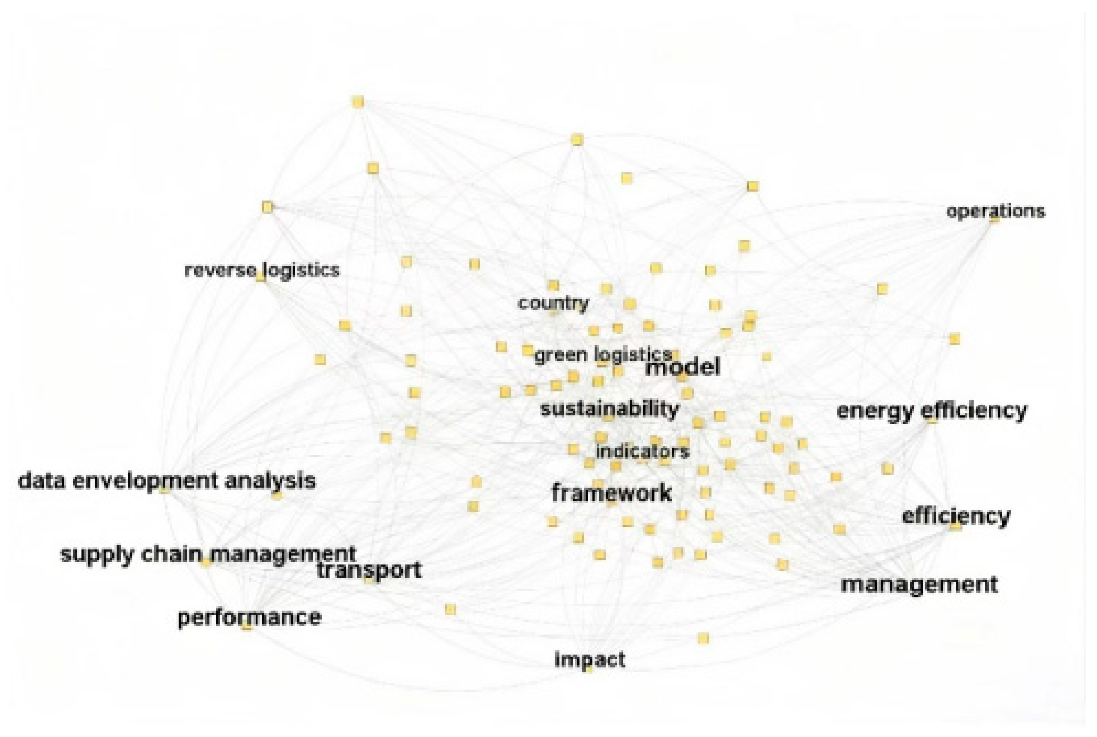 Step 3: Keyword frequency statistics were obtained from the keyword co-occurrence results. To prevent generic terms directly related to the research theme—such as “green logistics,” “cold chain logistics,” and “agricultural products”—from dominating the frequency rankings due to repeated appearances, these baseline terms were excluded. The top 25 high-frequency keywords were then extracted, representing research topics that have received greater scholarly attention. The literature associated with these high-frequency keywords was subsequently reviewed, and keyword frequency statistics relevant to the construction of the indicator system were compiled.