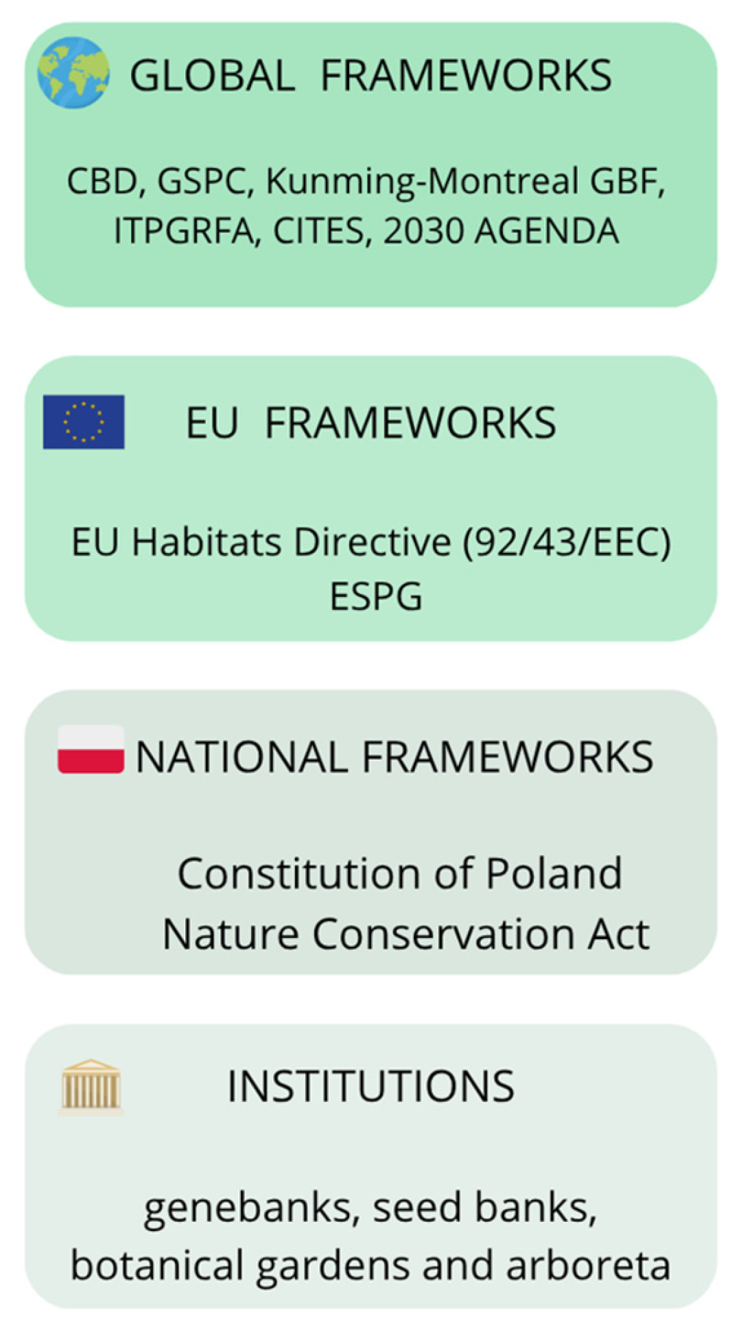 Rucińska, A.; Leszczewska, P.; Boczkowska, M.; Znój, A.; Nowosielska, D.; Podyma, W. Between Conservation and Utilization: Legal Frameworks Governing Crop Wild Relatives and Habitats Directive Species in Poland. Sustainability 2025, 17, 9371. https://doi.org/10.3390/su17219371