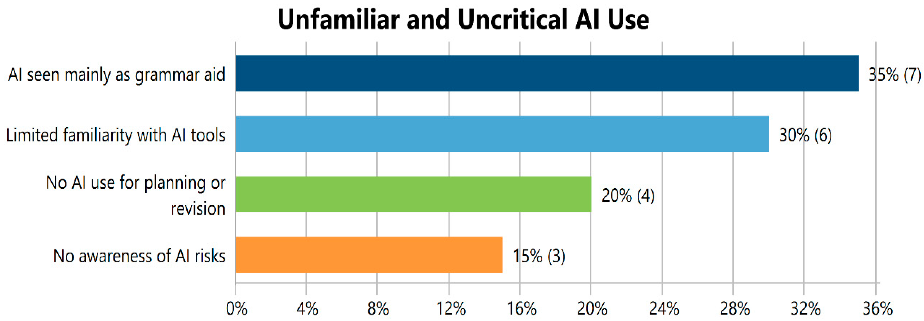 Theme 3: Strategic and Reflective AI UseStudents reported using AI tools for planning, revising, and organizing ideas.