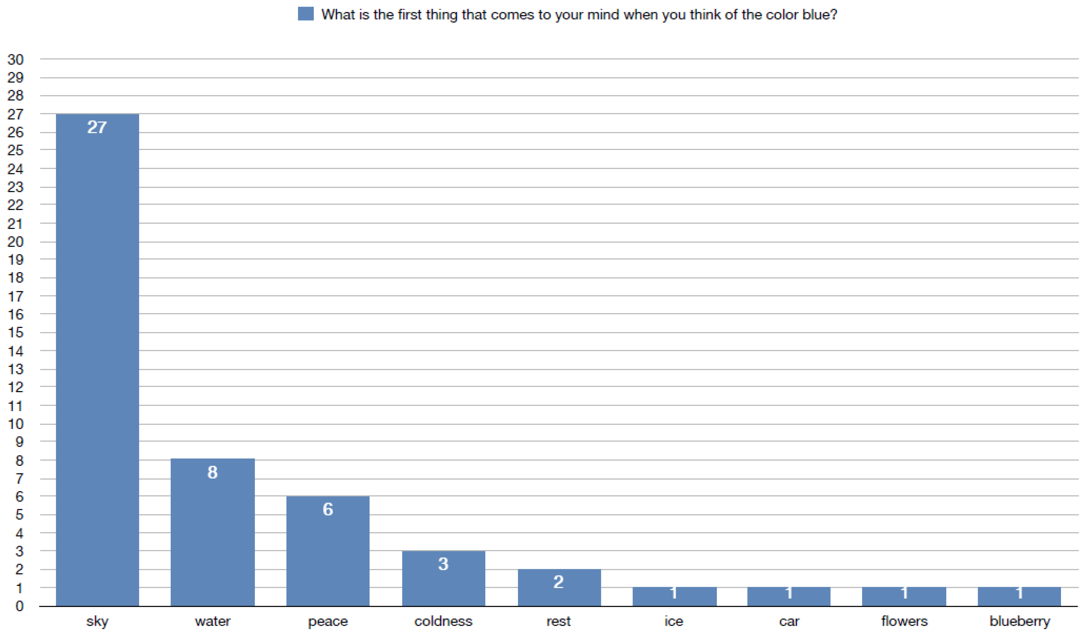 | Touch, texture-associations | Warm, rough—in synesthetic sensations, it may be associated with the impression of warmth, roughness or greater weight. | Cool, smooth—combined with the impression of coolness, smoothness and lightness. Often described as “lighter” and softer than red. |