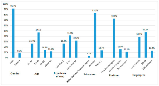This study has some limitations. The data were collected only from organizations in Amman, which may restrict the generalizability of the results to other regions in Jordan or different industries. The study also relied on cross-sectional data, which limits the ability to capture long-term causal effects. In addition, the use of self-reported survey responses may introduce bias. Another limitation of this study is the gender imbalance in the sample, with males accounting for 91.7% and females only 8.3%. This reflects the current composition of Jordan’s manufacturing workforce but may limit the generalizability of the findings.