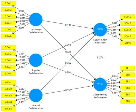 41]. Customers may provide feedback that enhances performance but does not necessarily drive innovation toward sustainability. Similarly, Hypothesis H8b was not supported, showing no mediating role of SCI between supplier collaboration and sustainability performance, contradicting prior works that highlighted supplier-driven innovation [