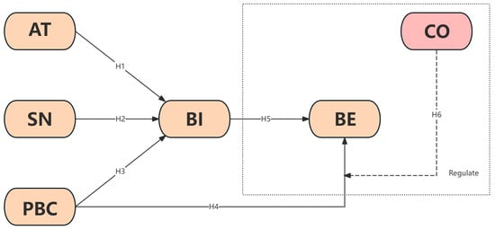 Behavioral intention (BI) denotes the inclination an individual exhibits prior to engaging in a particular action. This tendency reflects the result of the decision to carry out a certain behavior. It lies between the cognitive process and the external behavior. Behavioral intention is significantly correlated with the occurrence of an individual’s actual behavior [33]. Understanding the motivational factors behind an individual’s behavior can especially help researchers better understand specific causes [34]. The more determined a person’s willpower is, the more likely they are to perform a particular behavior, increasing the chance that they will end up performing it. In contrast, if the will to act is not strong enough, indicating their lack of confidence in completing the action, this makes it possible and more likely for them to change the original intention and less likely to actually execute that action.