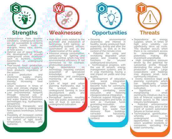 SWOT analysis of the potential for developing urban underground farms.