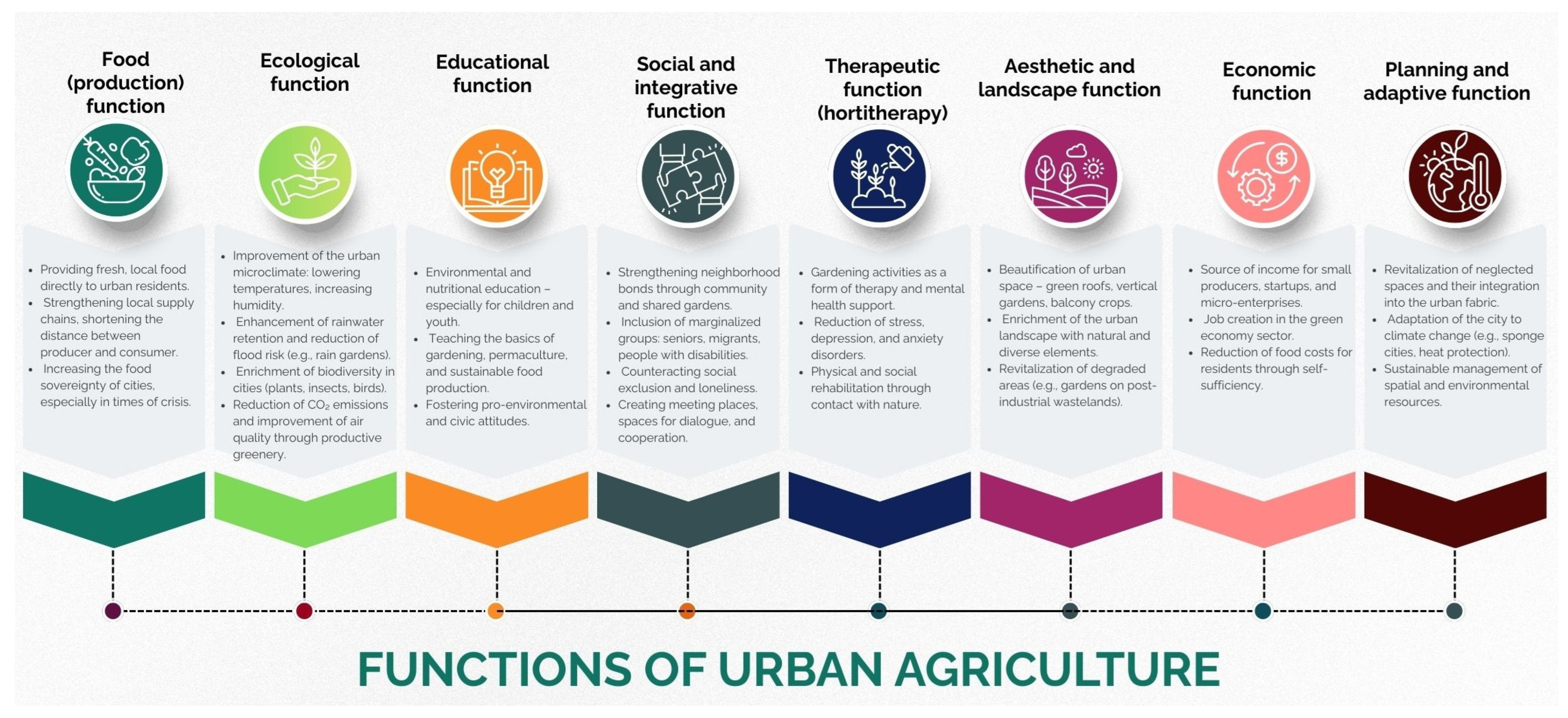 - Skar, S.L.G.; Pineda-Martos, R.; Timpe, A.; Pölling, B.; Bohn, K.; Külvik, M.; Delgado, C.; Pedras, C.M.; Paço, T.A.; Ćujić, M.; et al. Urban Agriculture as a Keystone Contribution Towards Securing Sustainable and Healthy Development for Cities in the Future. Blue-Green Syst. 2020, 2, 1–27. [Google Scholar] [CrossRef]