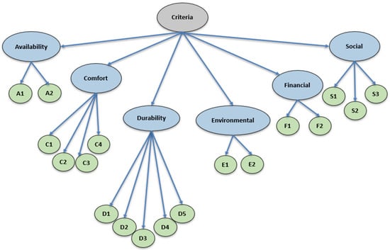 Within the scope of this study, some of the criteria considered in the studies mentioned in the literature section were selected, and some were added by the authors, resulting in the identification of 6 main criteria and 18 sub-criteria. The codes for the identified criteria and sub-criteria are provided in Figure 4. The explanations of the sub-criteria are provided in Table 1.