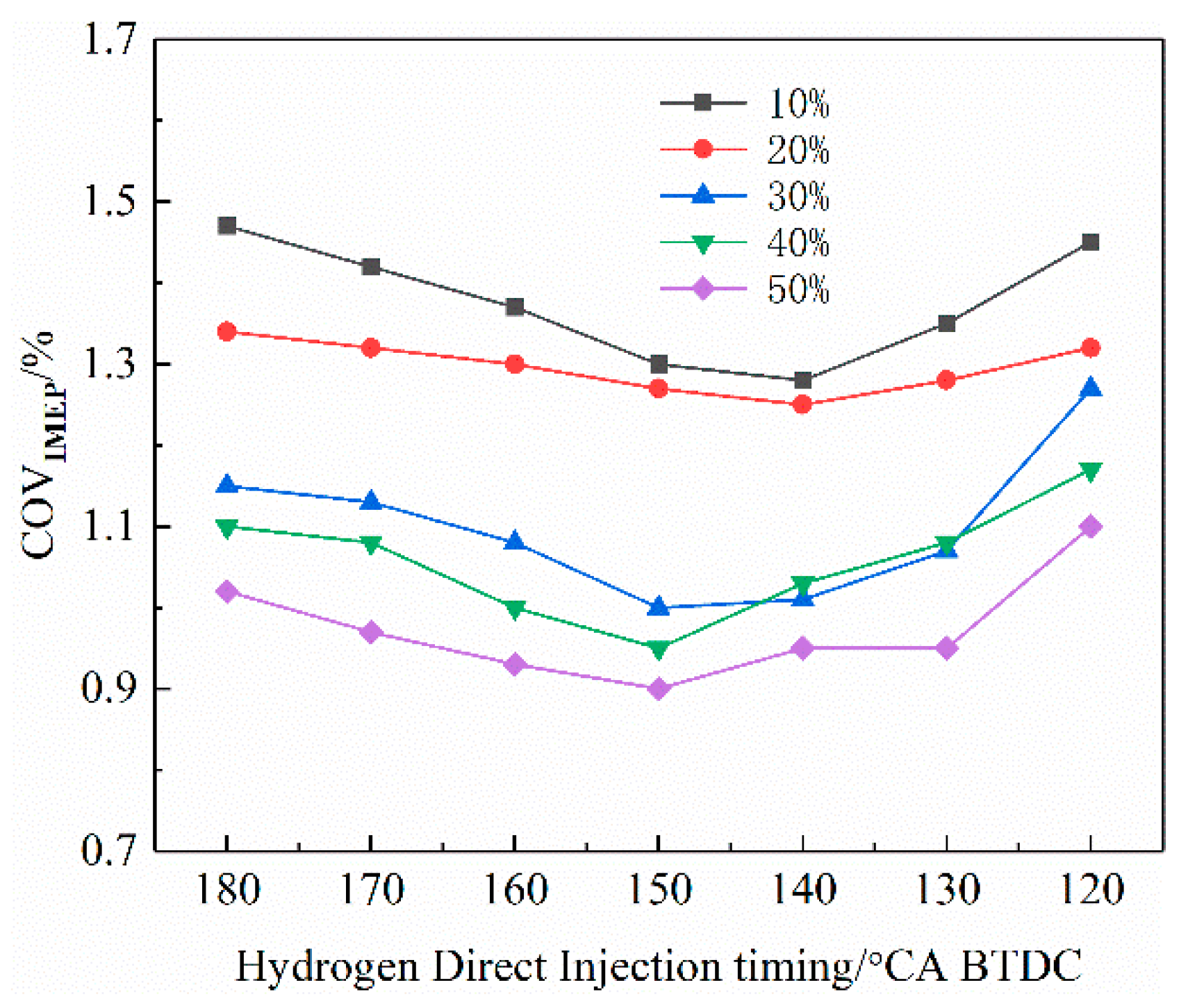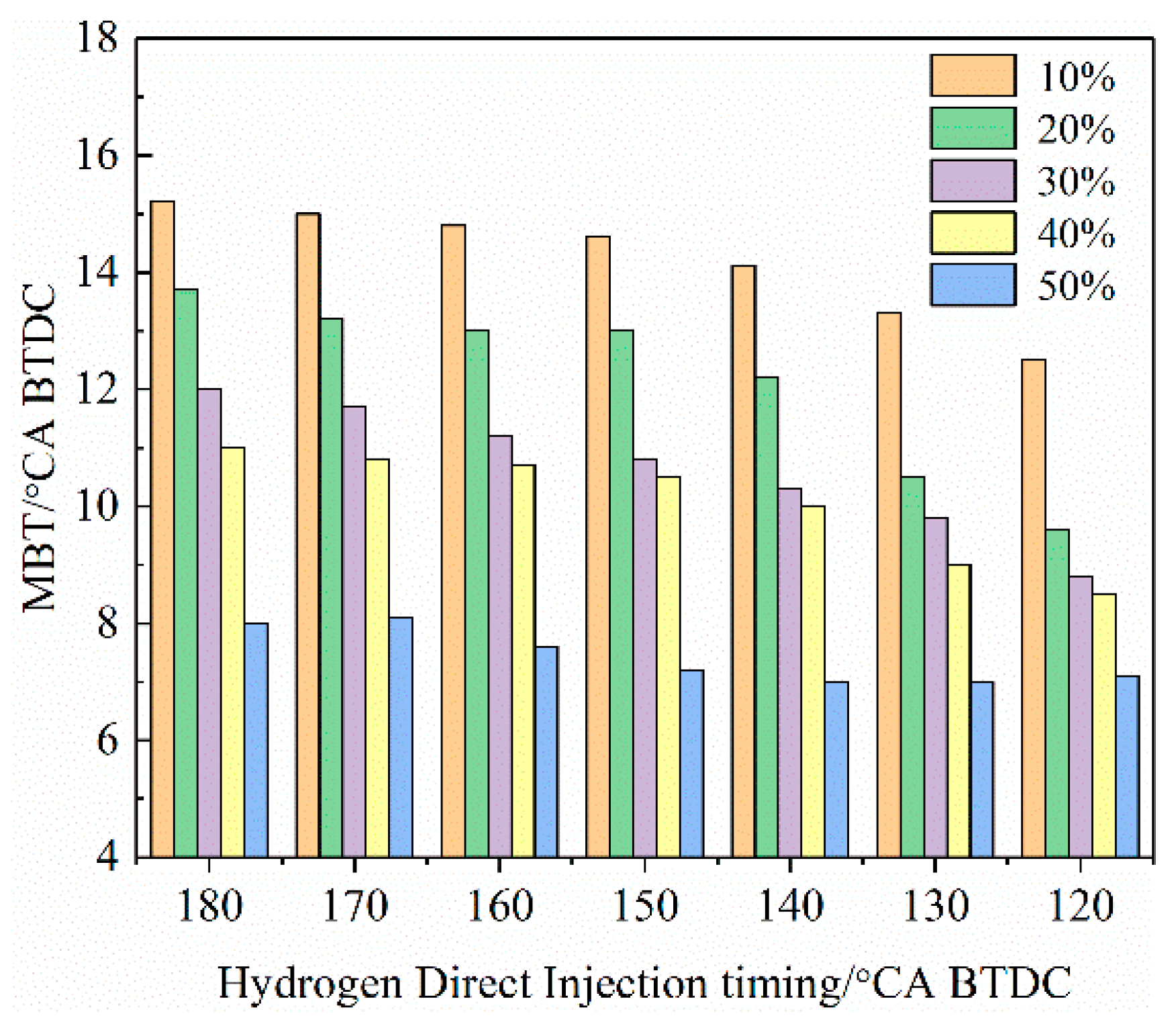 First hydrogen direct injection timing (°CA BTDC) | 180, 170, 160, 150, 140, 130, 120 |
