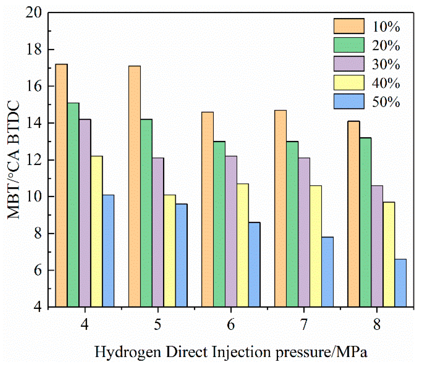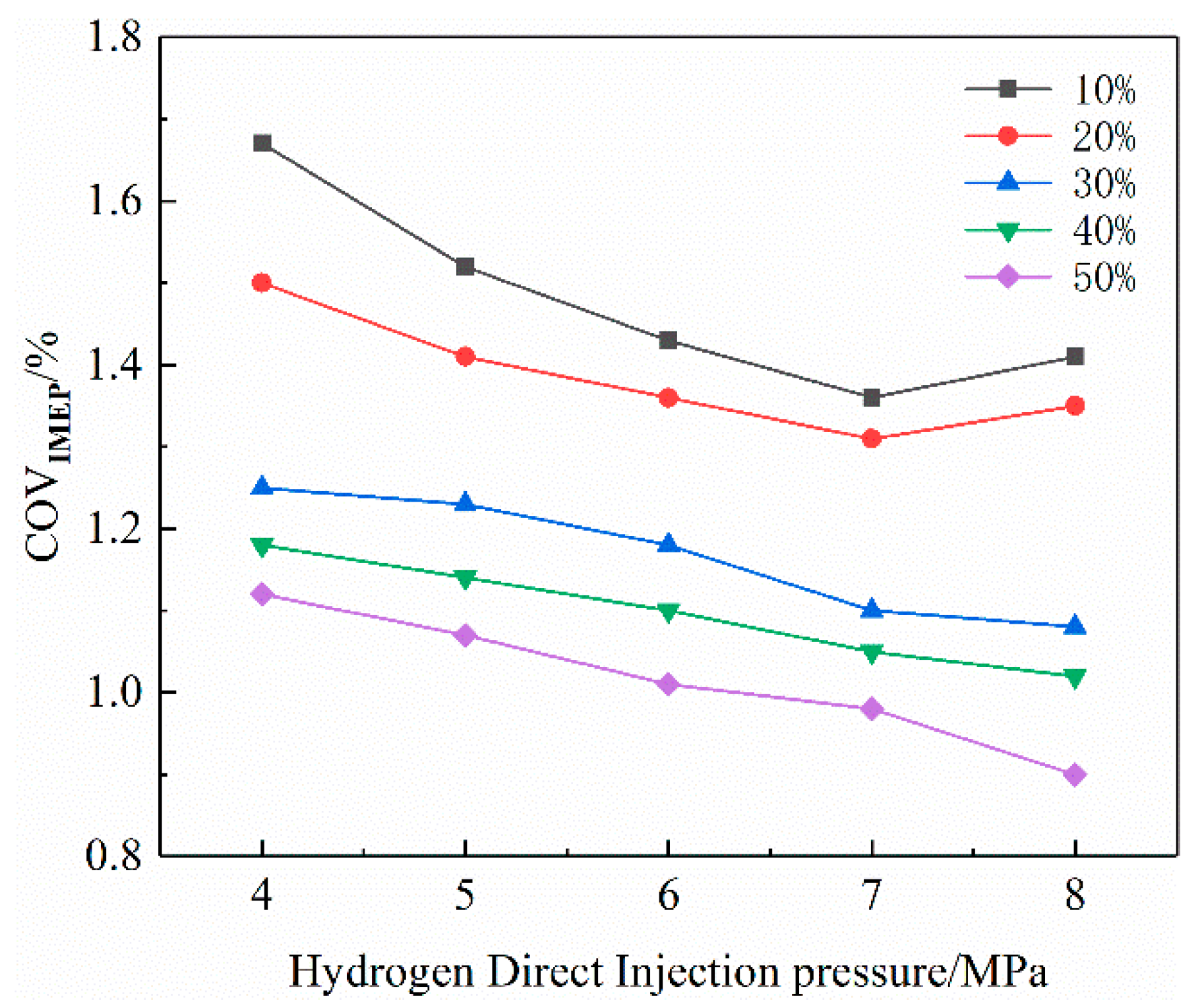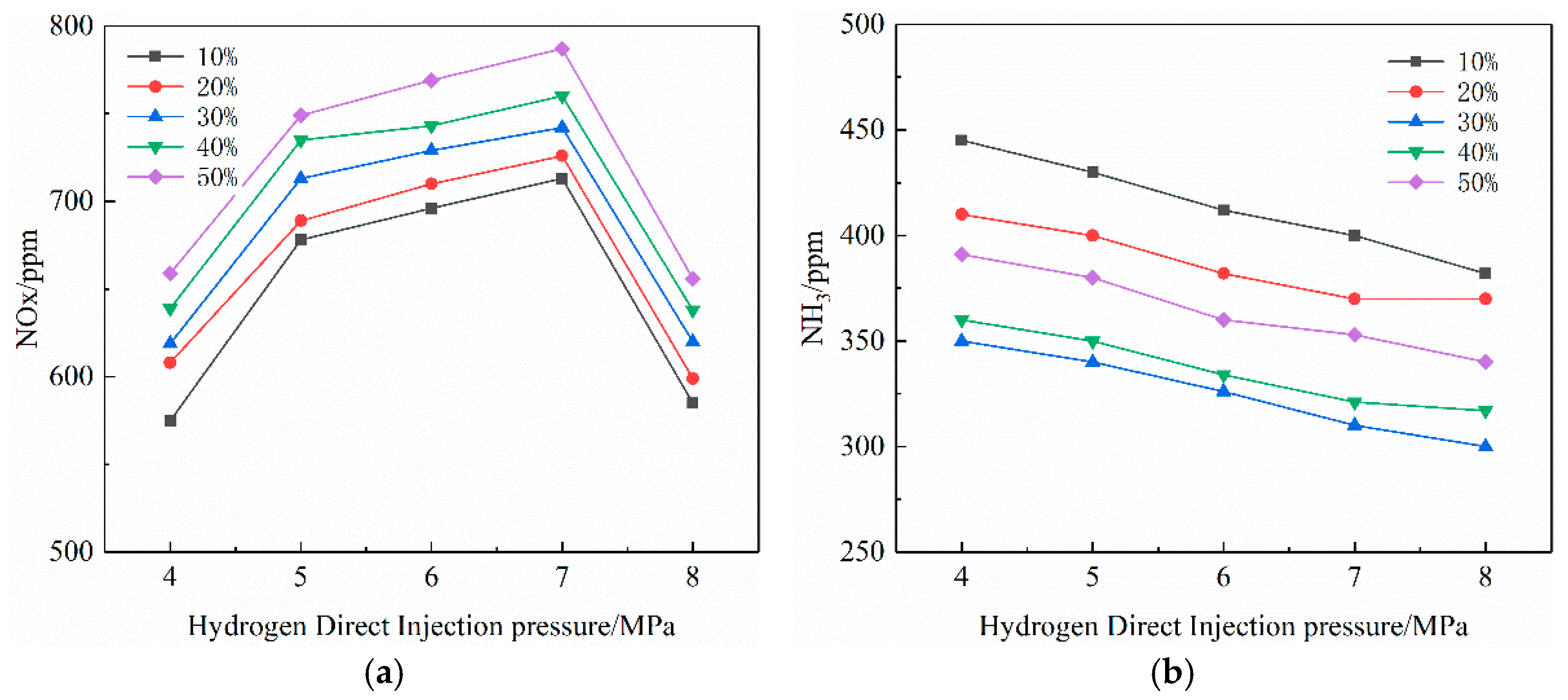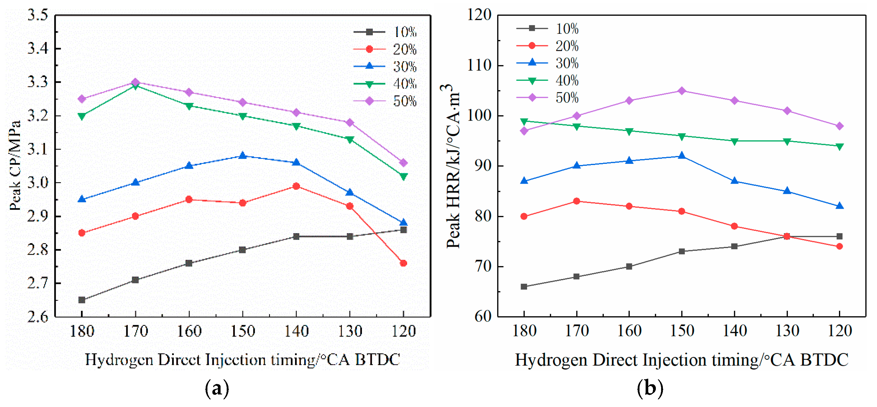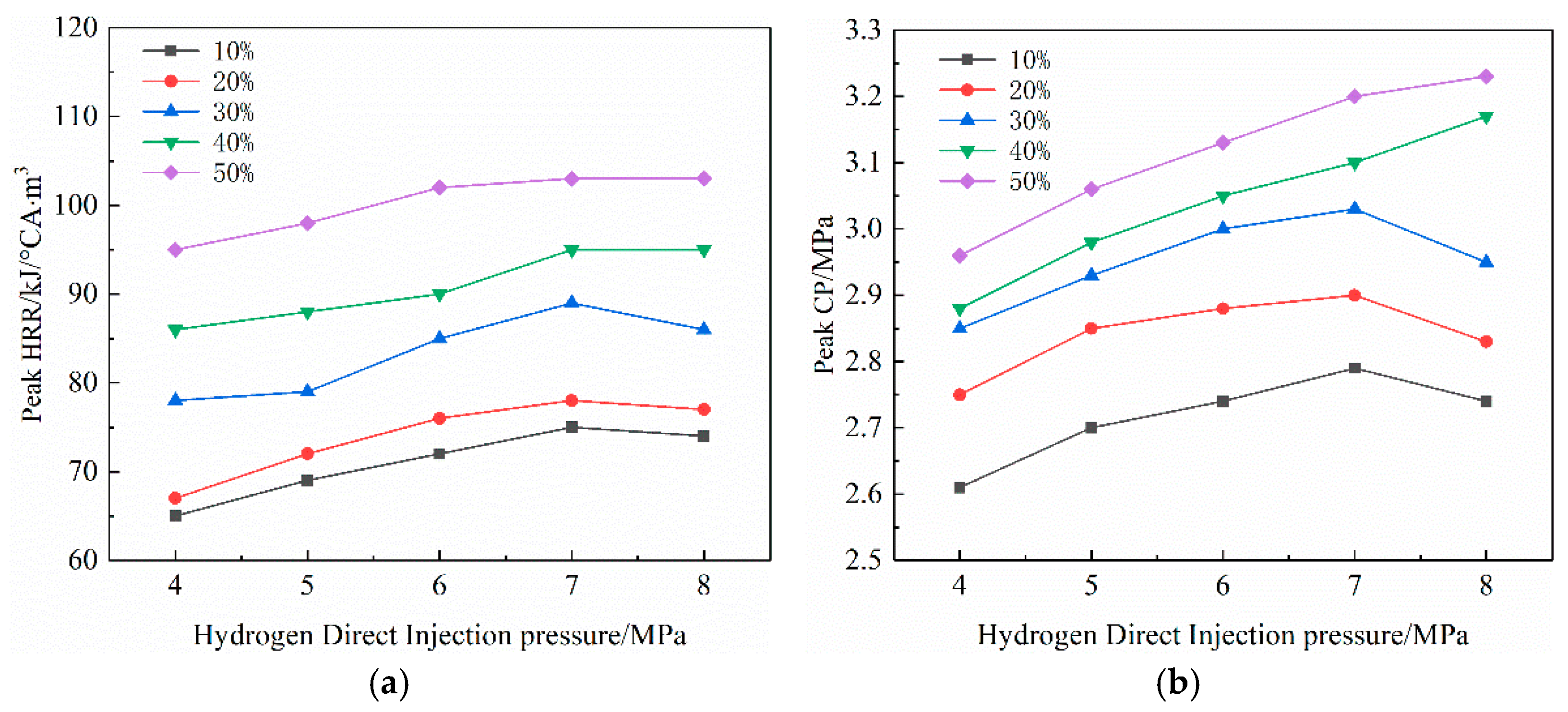 Hydrogen direct injection ratio (%) | 10, 20, 30, 40, 50 |