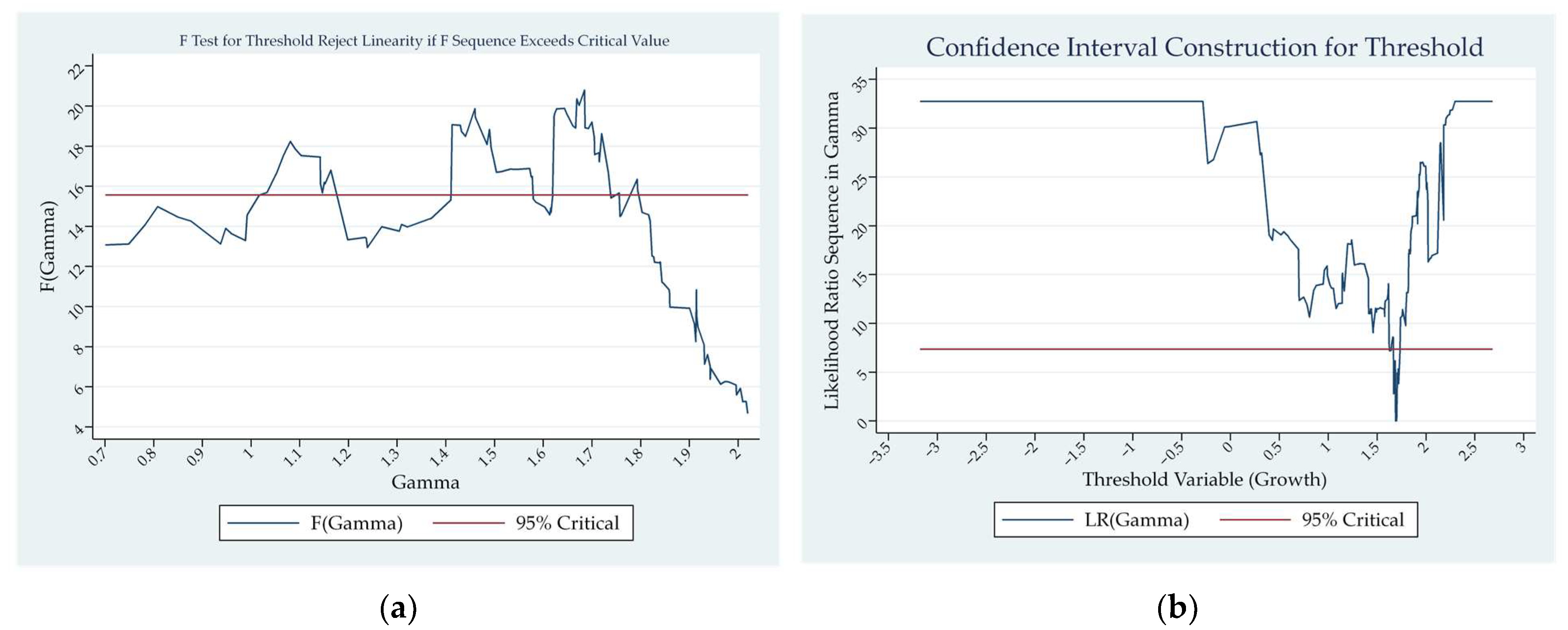 - Hansen, B. Sample Splitting and Threshold Estimation. Econometrica 2000, 68, 575–603. [Google Scholar] [CrossRef]