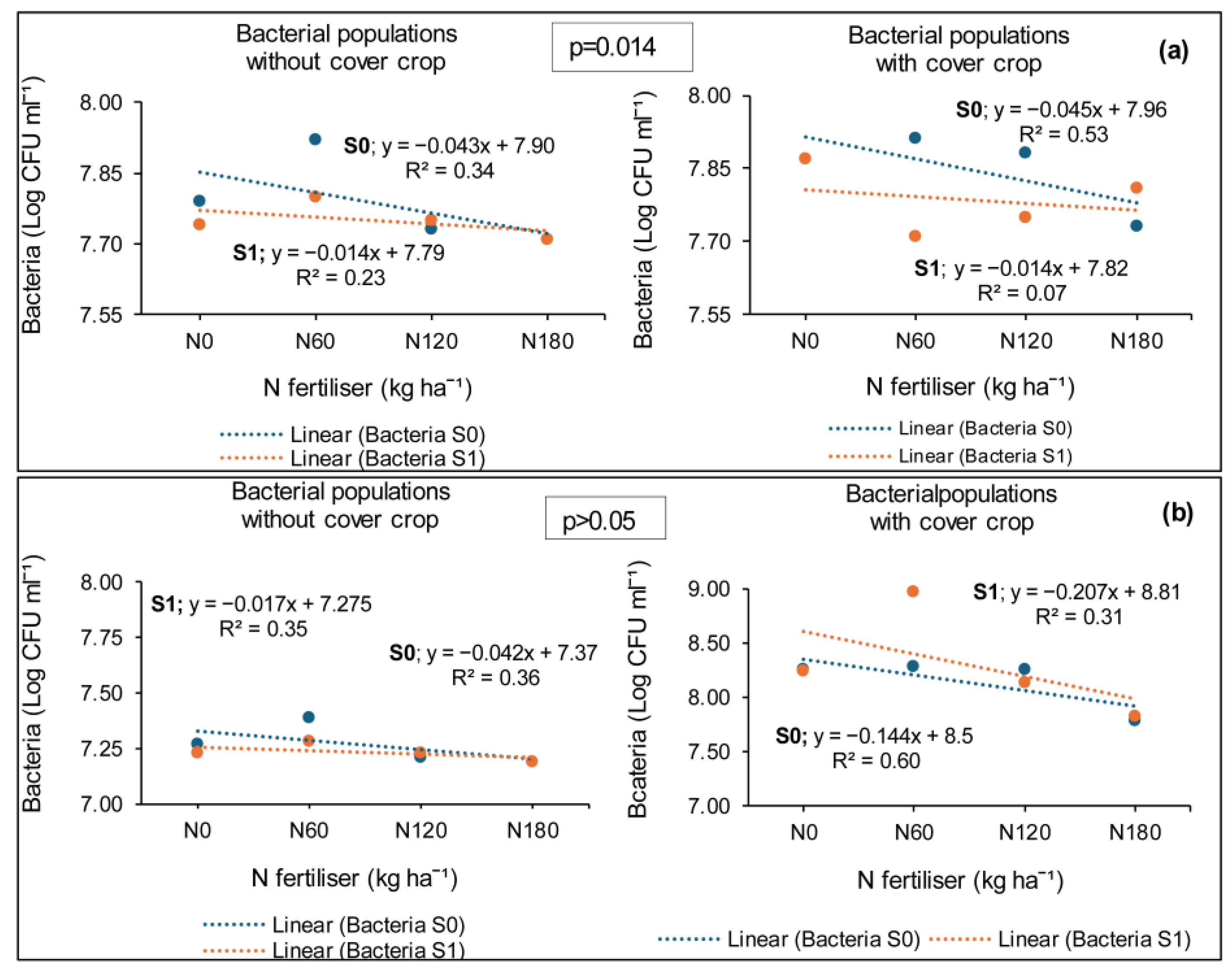 | N0 | 7.82 ab (0.07) | 7.75 a (0.47) |