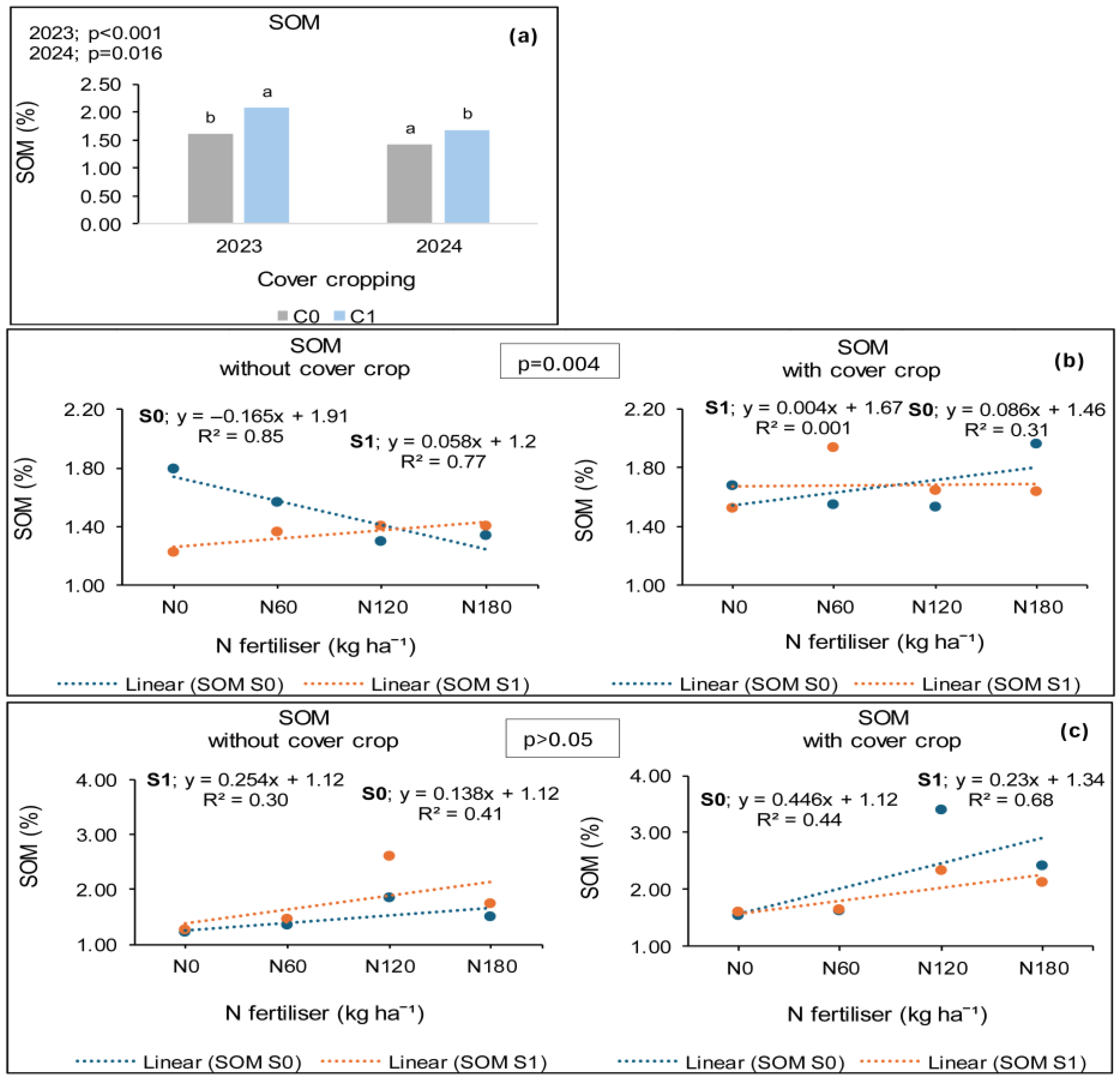 3.5. Treatment Effects on Soil Organic Matter (SOM)