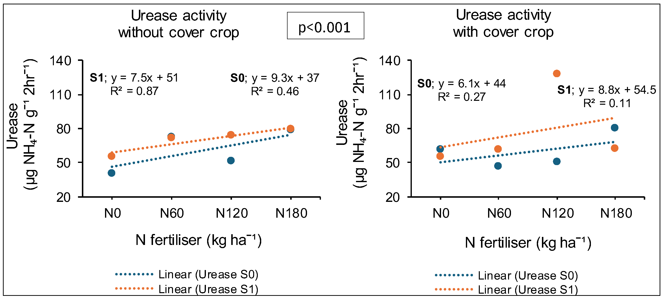 | Urease (µg NH4-N g−1 2 hr−1) | ||