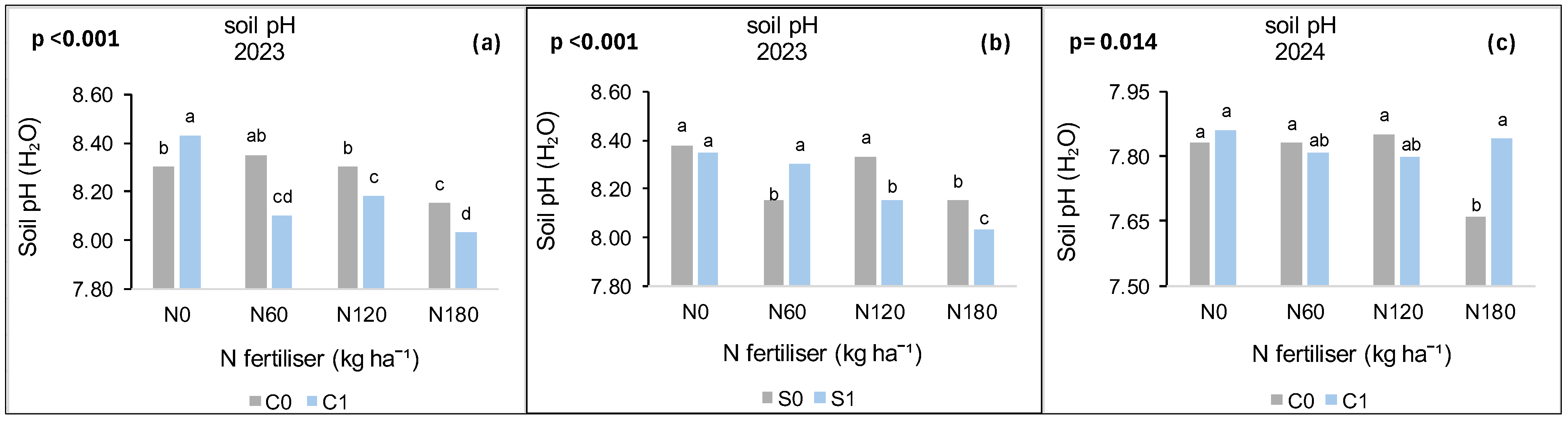 | C0 | 7.99 a (0.19) | 7.25 b (0.49) |