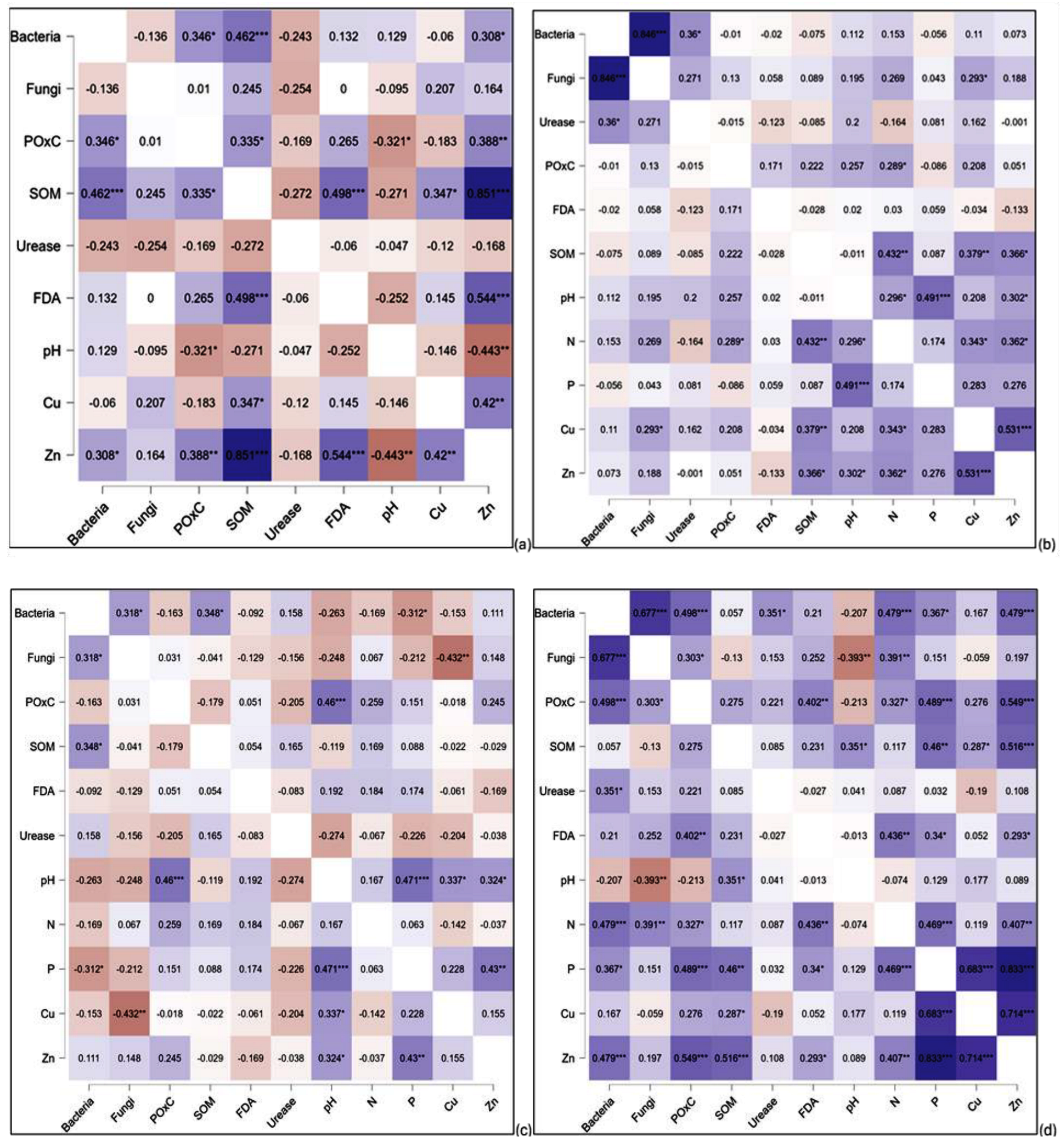 3.9. Correlation Relationships Between the Selected Soil Biological Properties