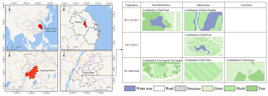 The research site was located in Jiangning District, Nanjing, situated in the eastern portion of the Yangtze River Delta region. Jiangning District lies within the hilly terrain of the lower reaches of the Yangtze River, characterized by a landscape comprising hills, mountains, ridges, and plains. The area serves as a microcosm of the characteristic mountain–water interwoven landscapes of the Yangtze River Delta region. The region possesses a well-developed rural tourism industry and has repeatedly been recognized with the title of National Model Rural Tourism Village. The rural landscape in the Yangtze River Delta region is shaped by the interaction of natural and anthropogenic factors, resulting in a distinctive rural landscape pattern. The dense water network divides the land into plots of varying sizes, causing natural vegetation and agricultural land to appear fragmented and discontinuous. Vegetation patches are scattered across various small microhabitat types, including those around villages, along water edges, and at the edges of hard pavements. These patches intersperse with each other, creating heterogeneous and diverse landscapes. Meanwhile, within the context of regional integration and green development strategies, rural landscape construction in the Yangtze River Delta is more advanced than in other cities. The highly urbanized process has significantly impacted rural habitats [37]. Excessive human development activities have further exacerbated the complexity and fragmentation of the landscape structure in rural areas, resulting in numerous smaller-scale fragmented patches [38,39]. These small-scale landscapes are characterized by diverse habitats, wide distribution, and high redundancy, and they hold significant ecological value. In summary, owing to the representative characteristics of the rural landscape structure in the Yangtze River Delta region, this area can be considered an ideal case for investigating the ecosystem service value of small-scale landscapes. Jiangning District, Nanjing, is regarded as a microcosm of the rural landscape in the Yangtze River Delta region, and the conclusions drawn from this study are of reference value for comparable regions.